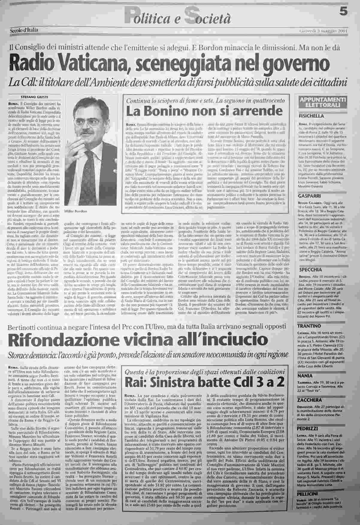 giovedì 3 maggio 2001