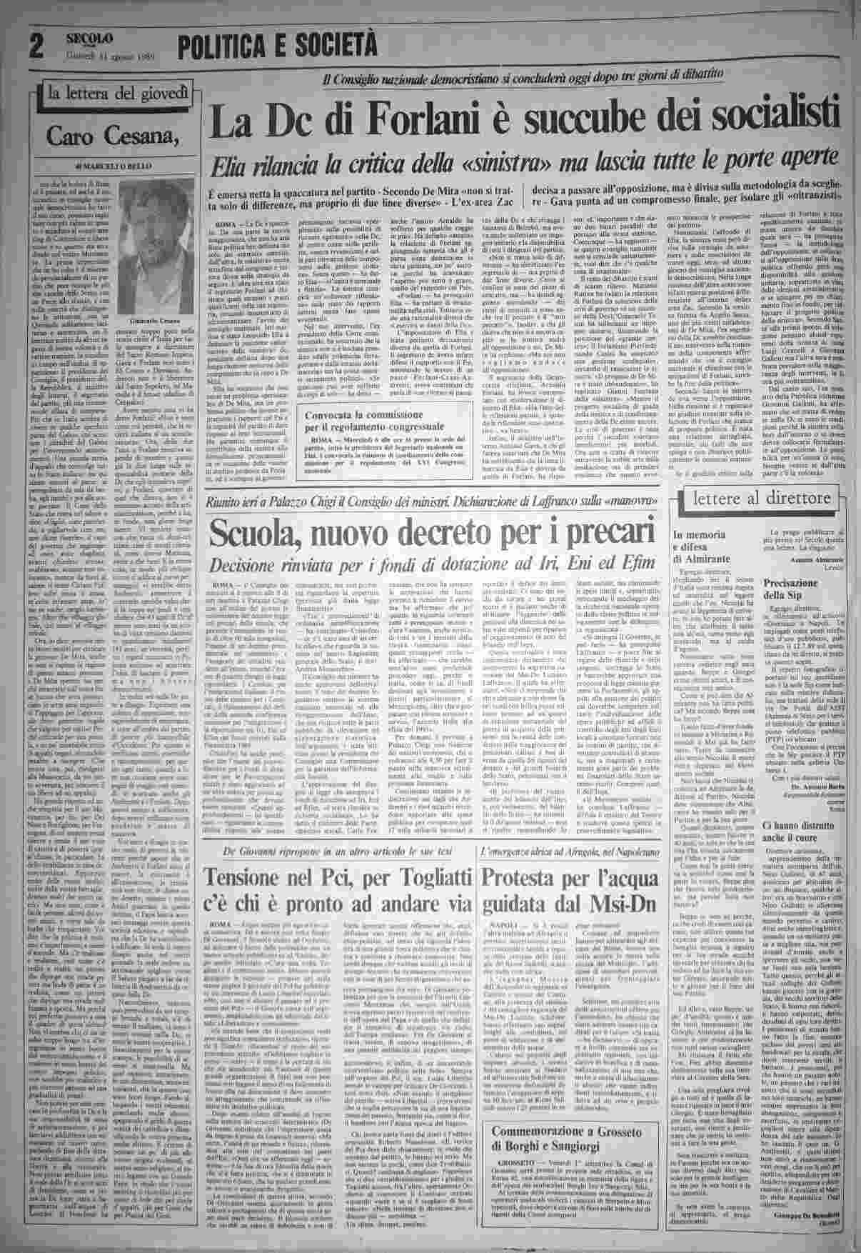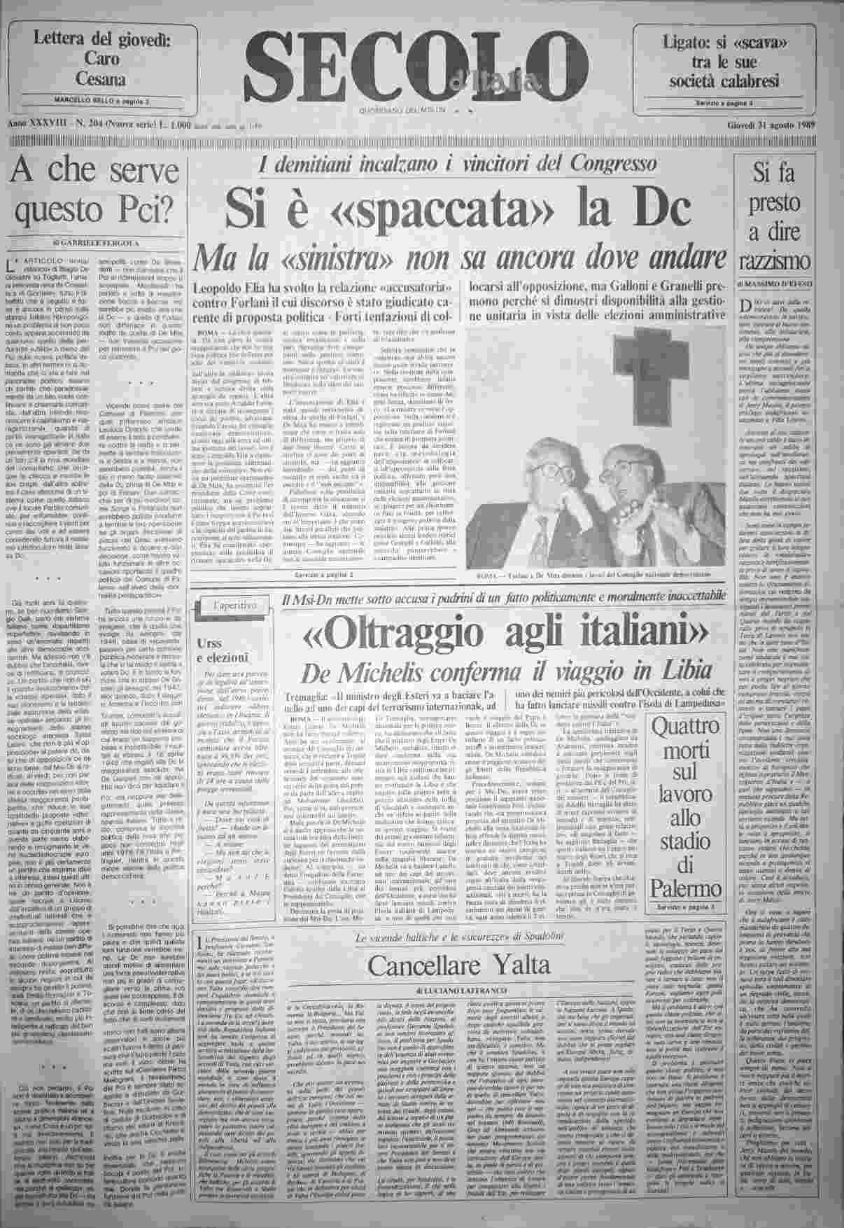 giovedì 31 agosto 1989