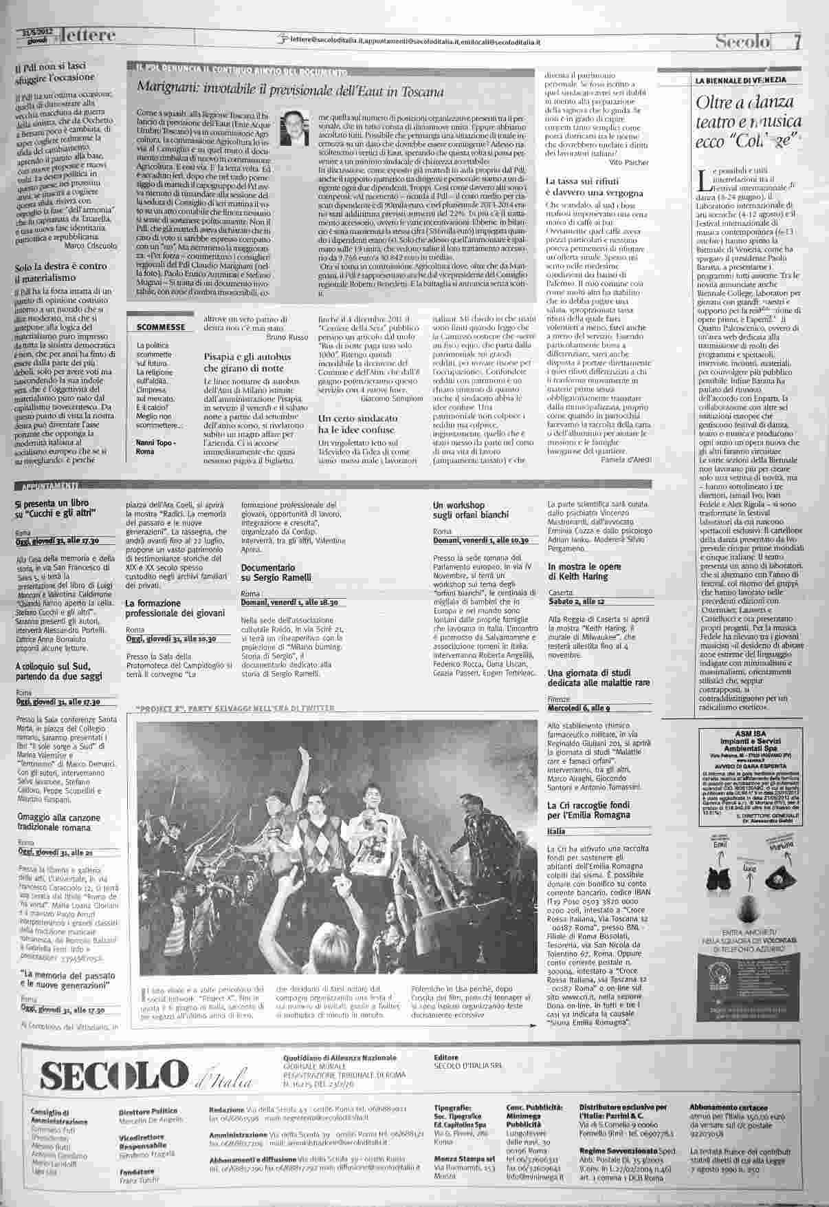 giovedì 31 maggio 2012