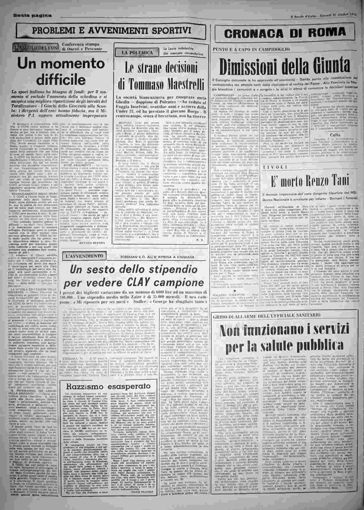giovedì 31 ottobre 1974