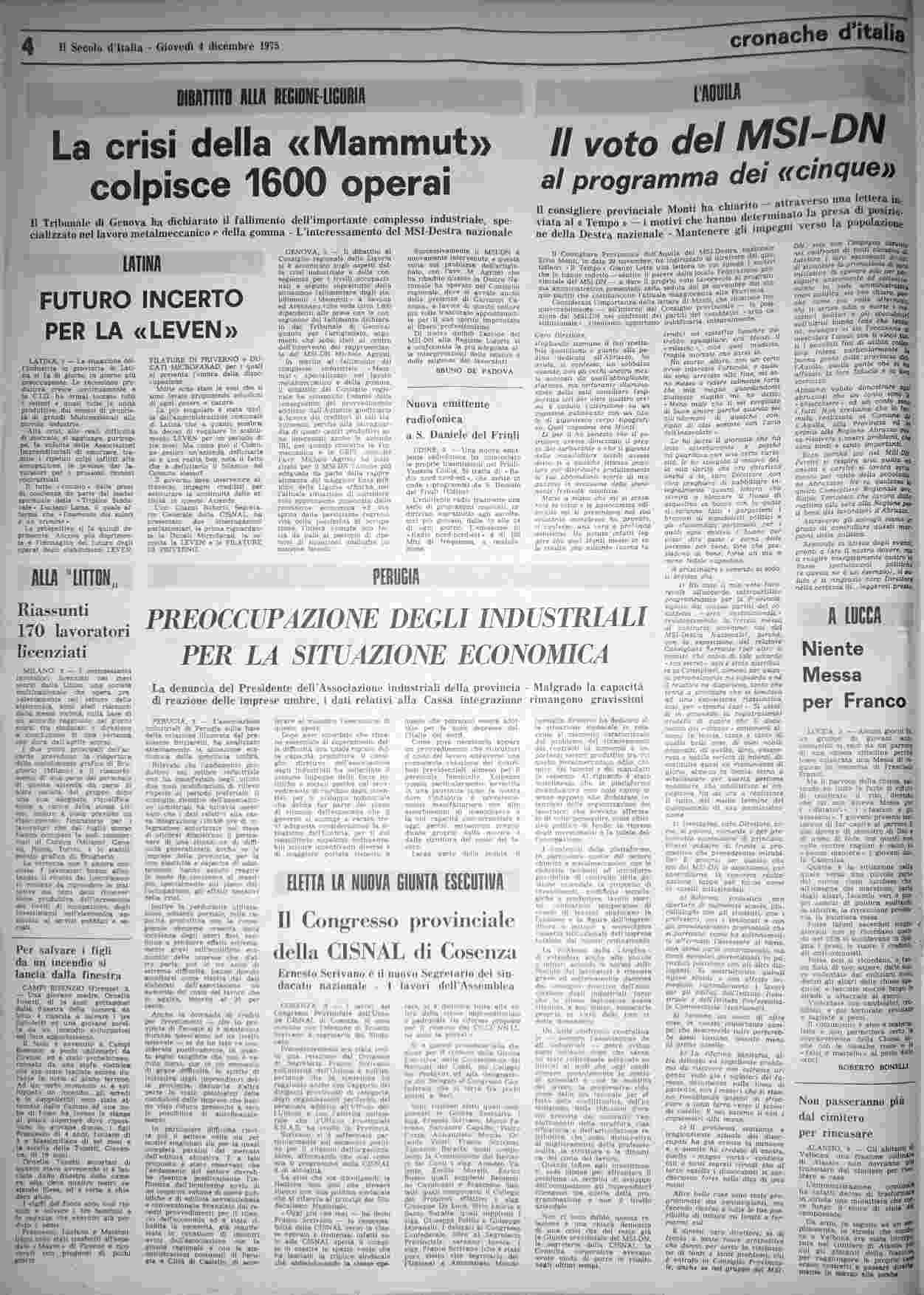 giovedì 4 dicembre 1975