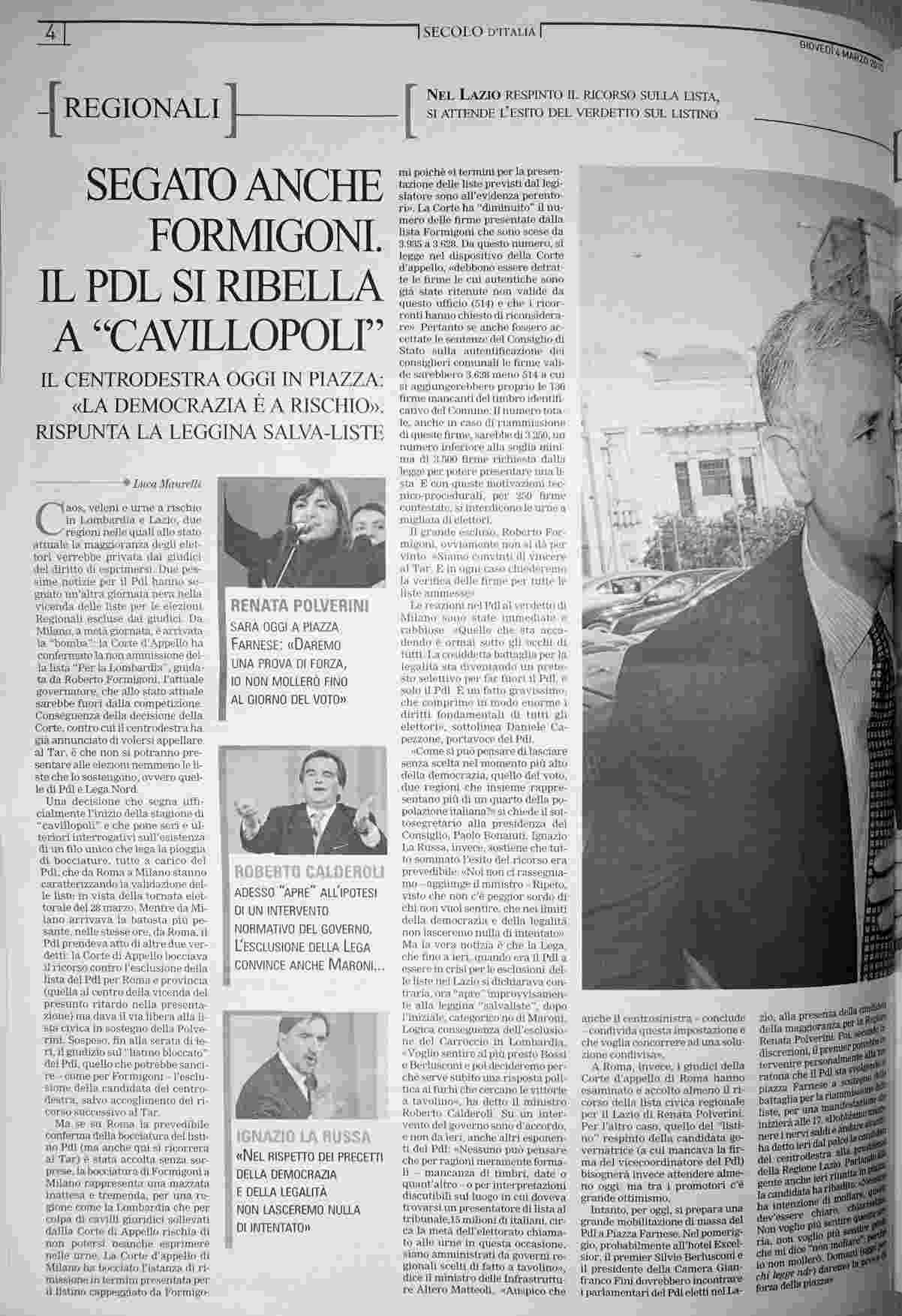 giovedì 4 marzo 2010