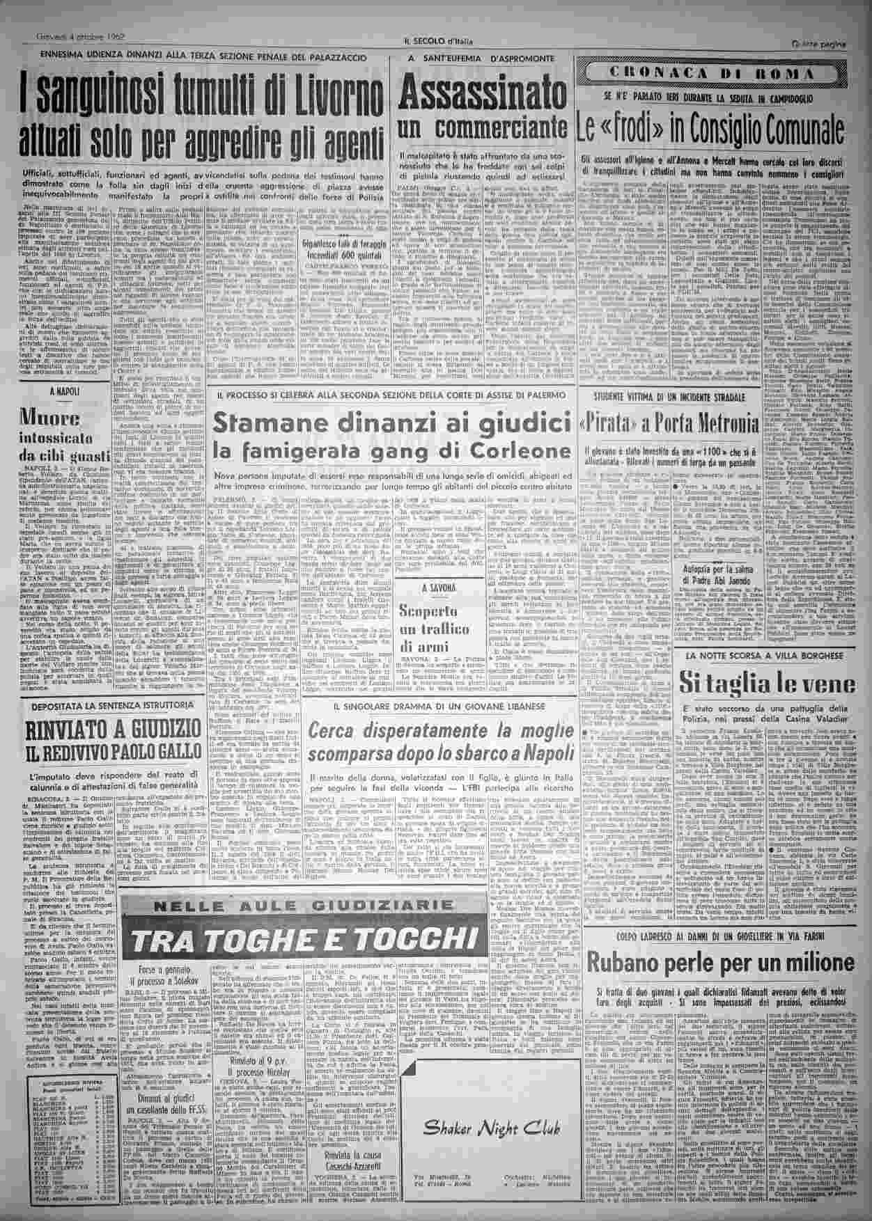 giovedì 4 ottobre 1962