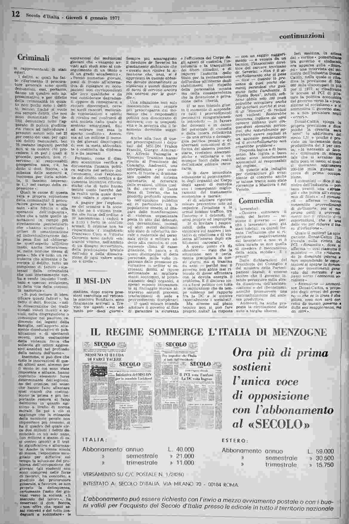 giovedì 6 gennaio 1977