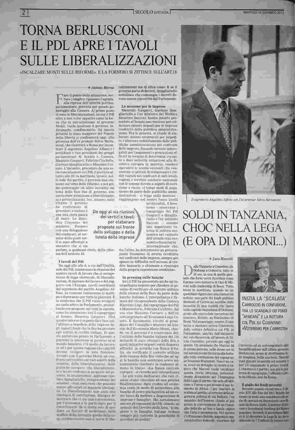 martedì 10 gennaio 2012