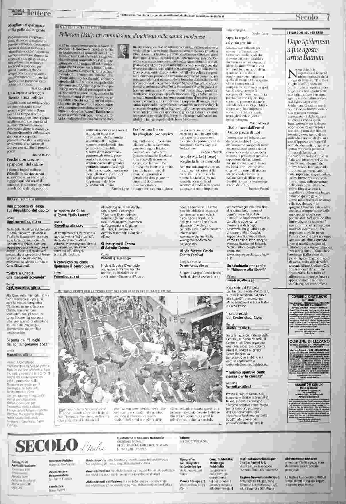 martedì 10 luglio 2012