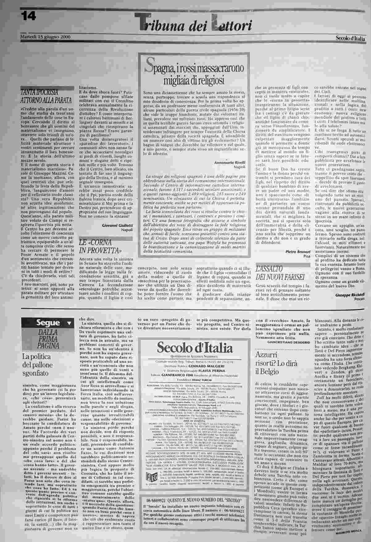 martedì 13 giugno 2000
