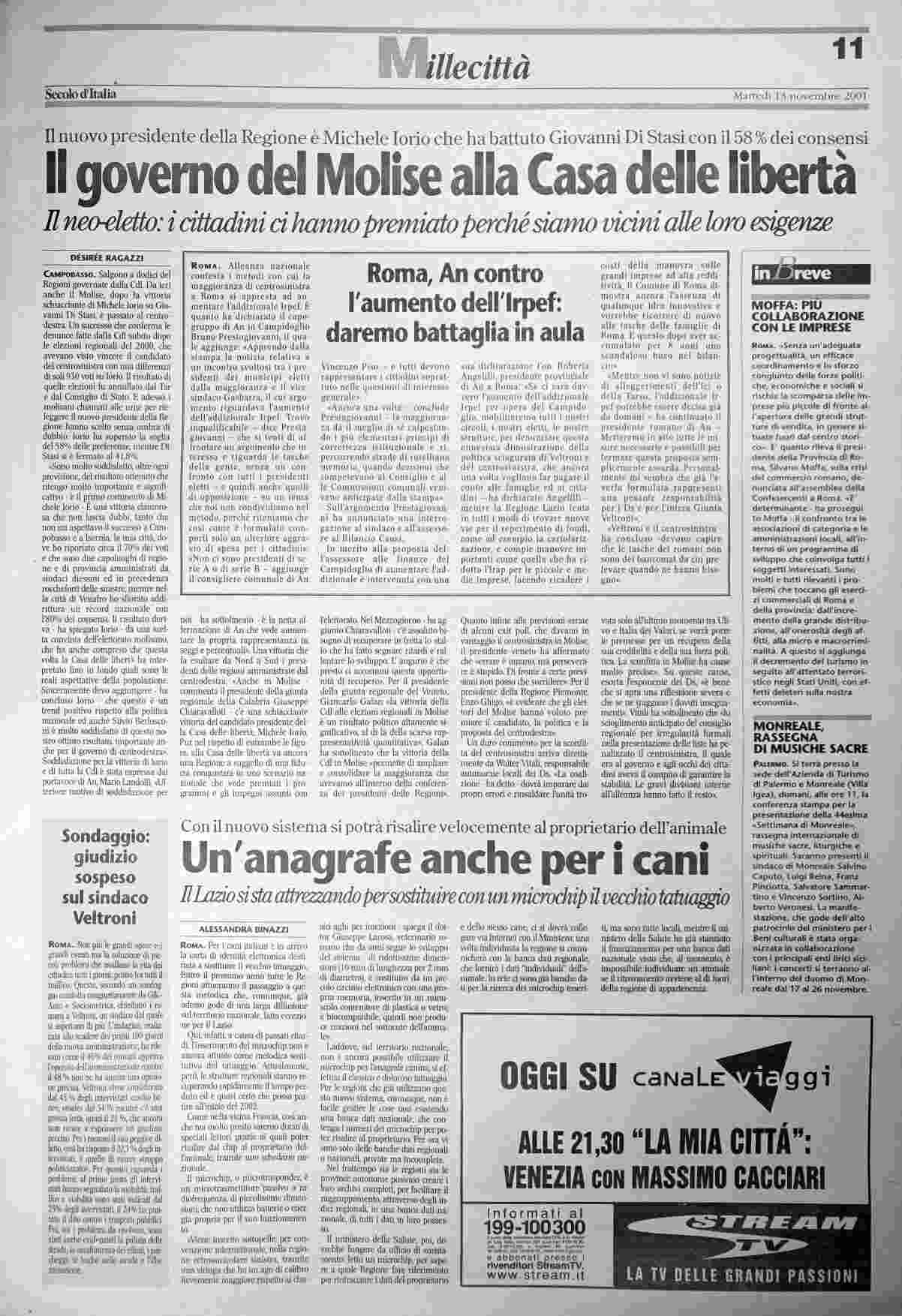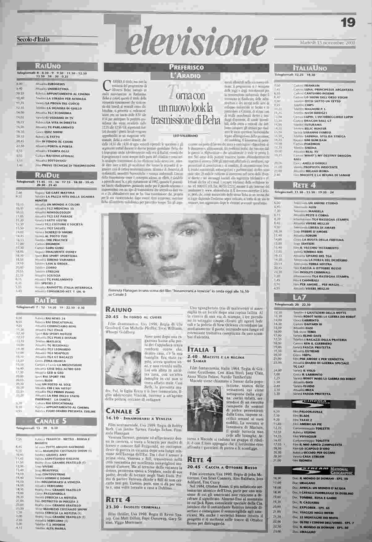martedì 13 novembre 2001