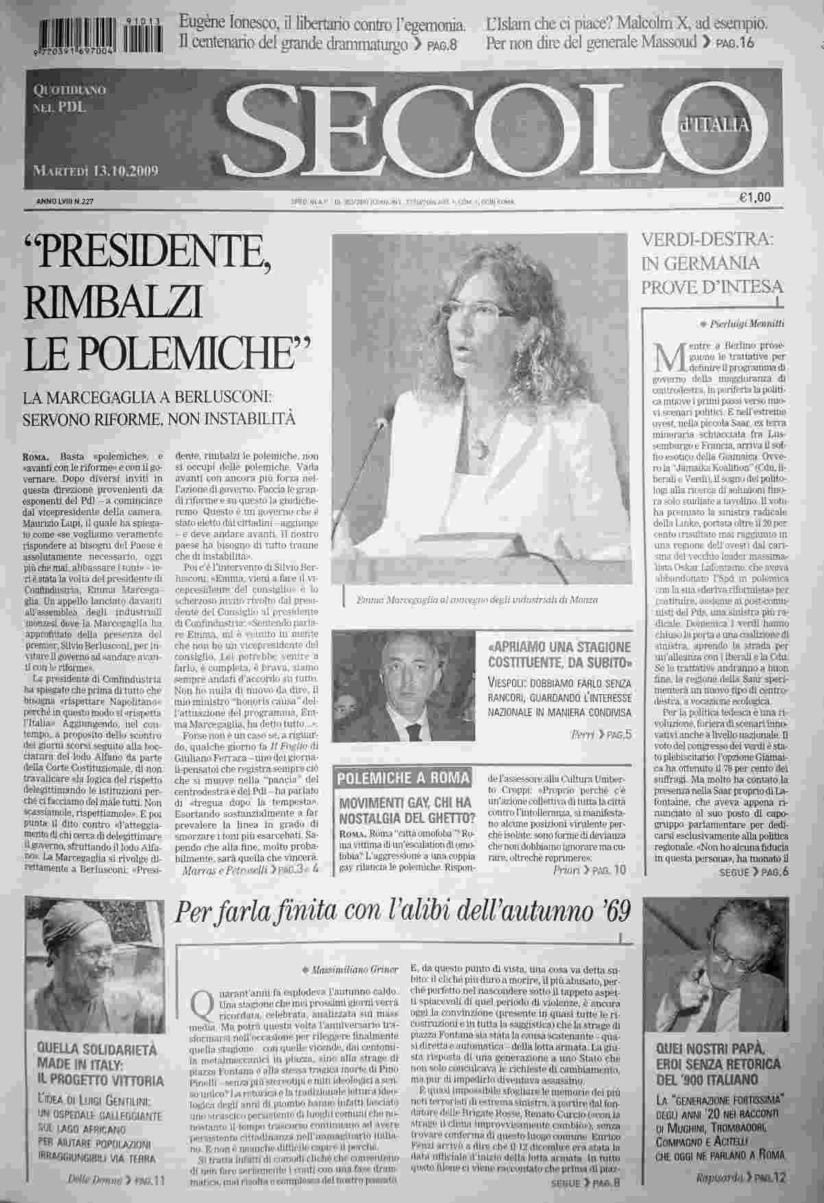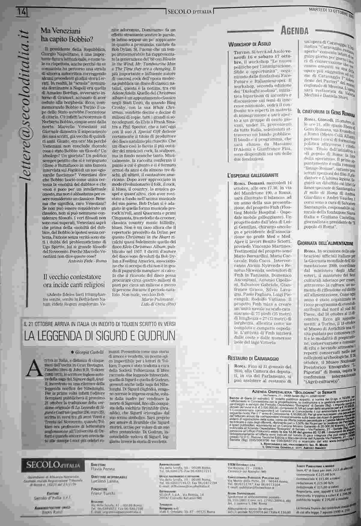 martedì 13 ottobre 2009