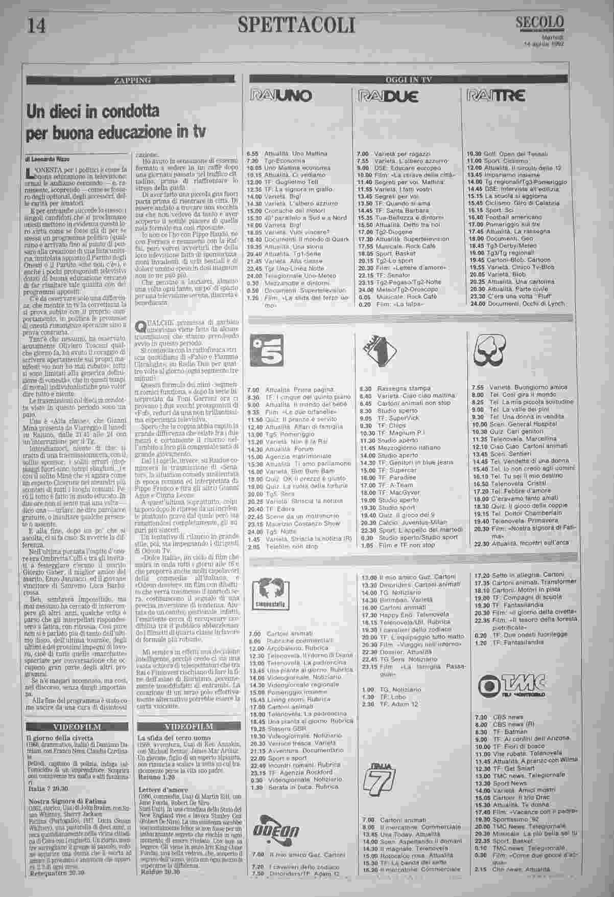martedì 14 aprile 1992