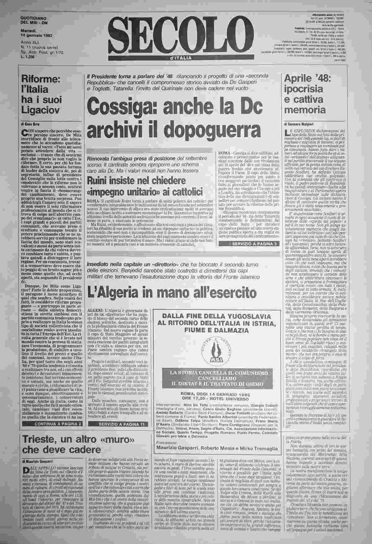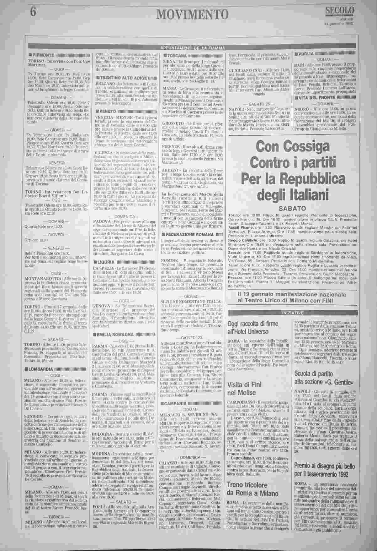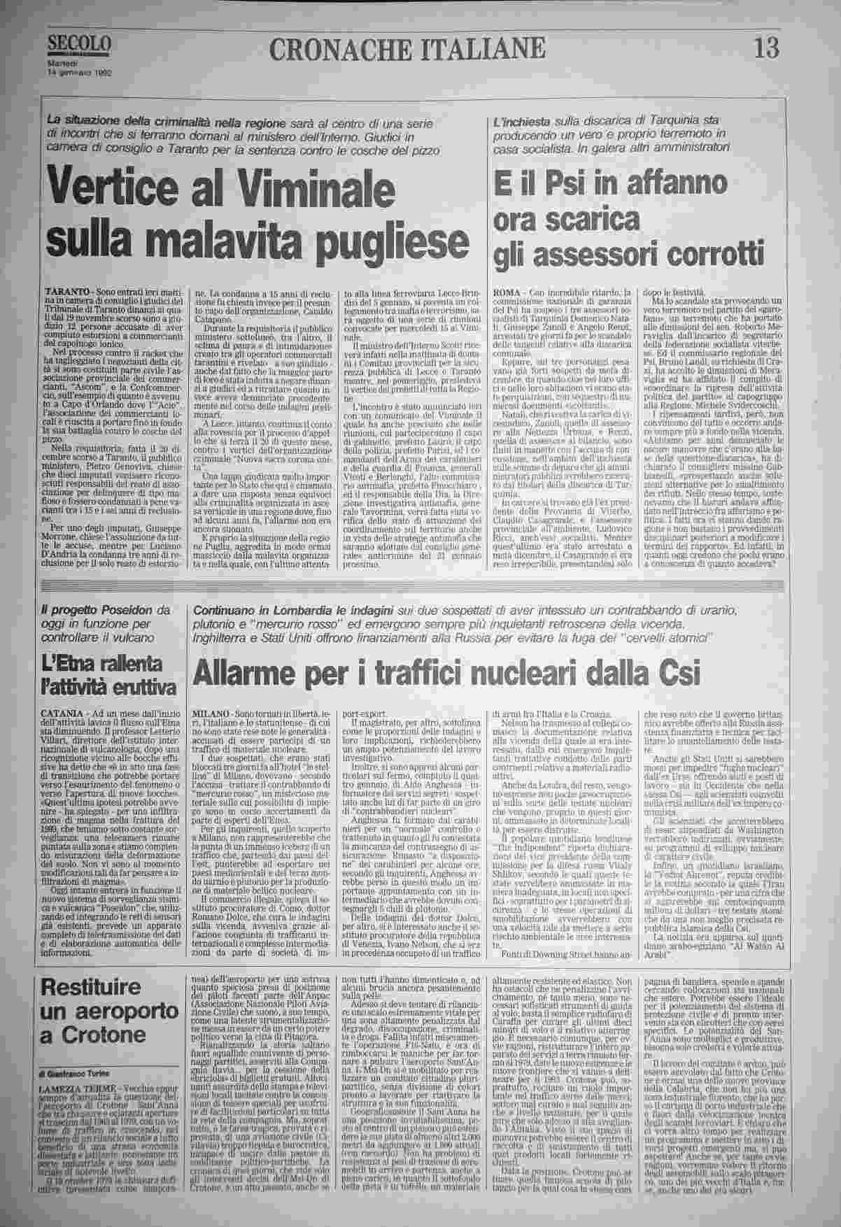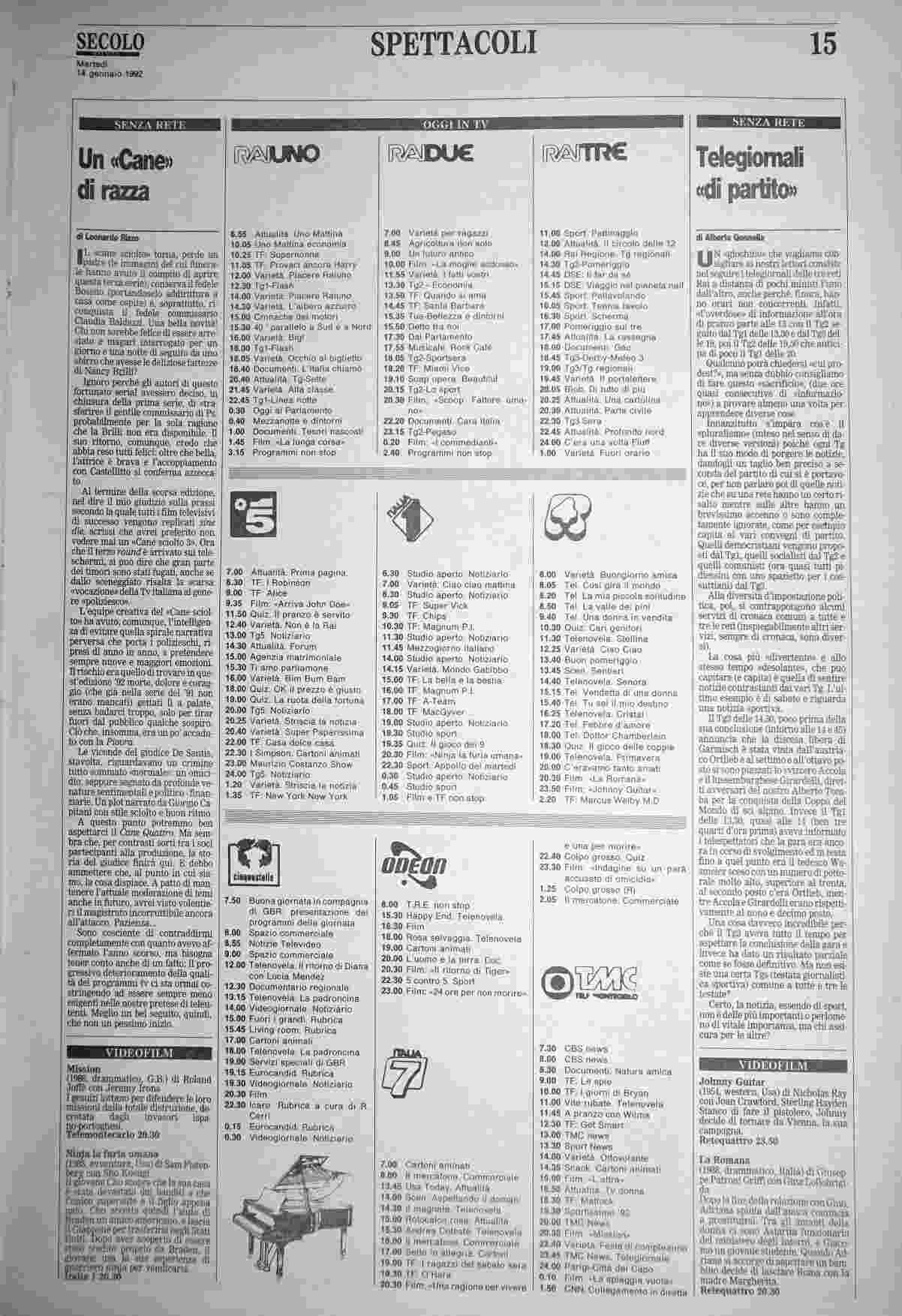 martedì 14 gennaio 1992