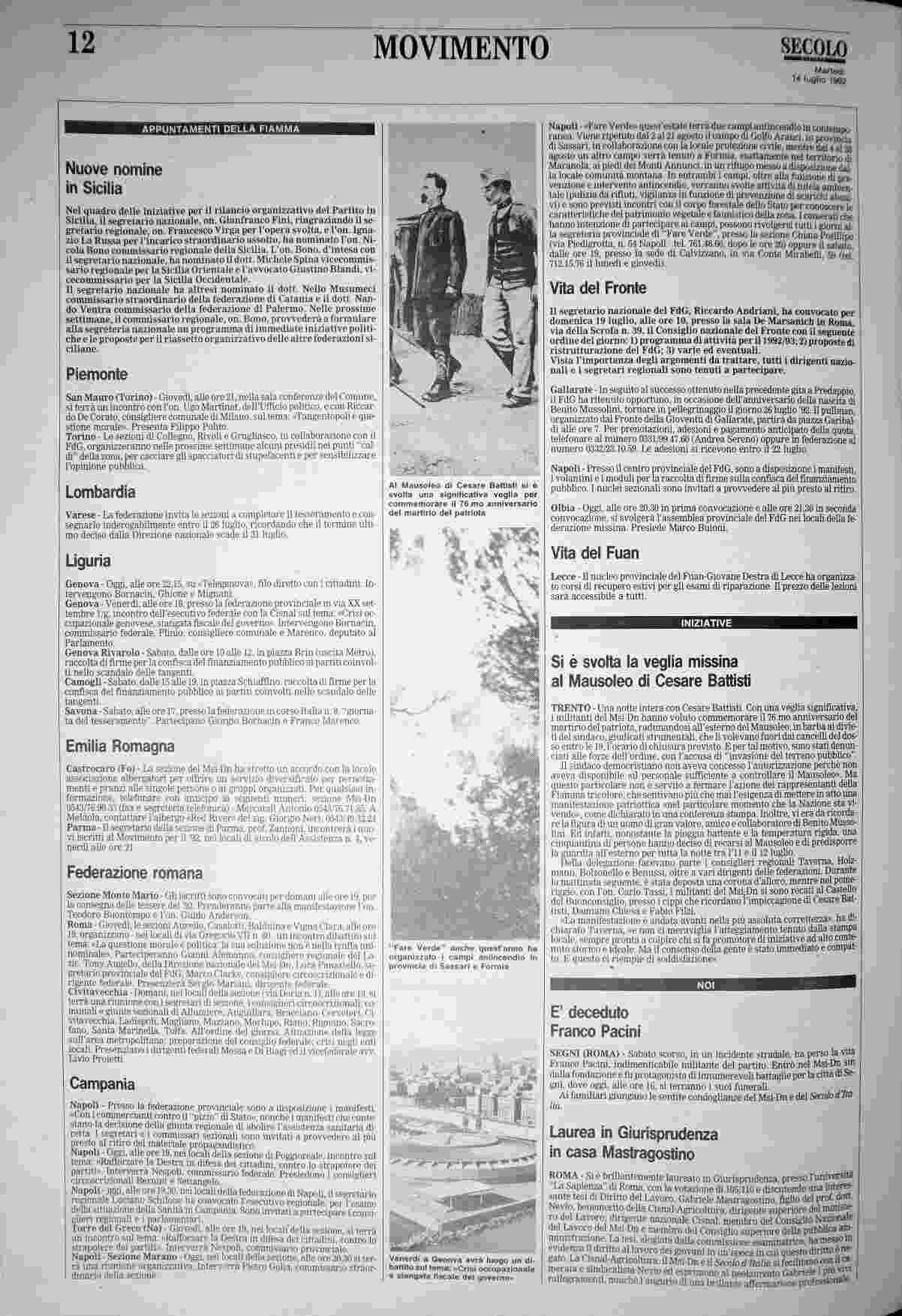 martedì 14 luglio 1992