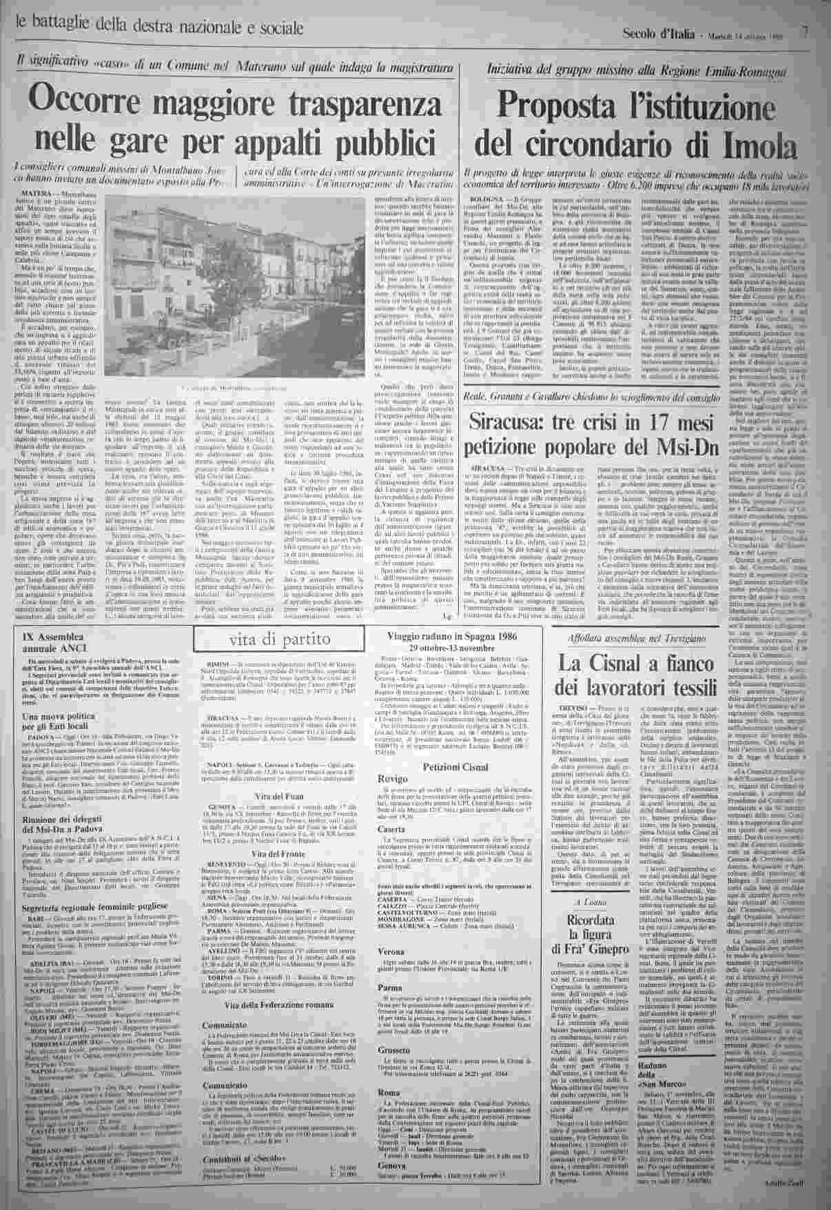 martedì 14 ottobre 1986