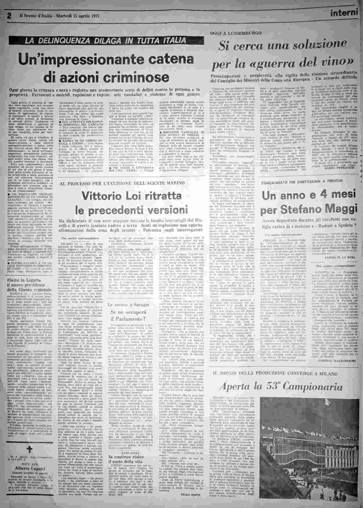 martedì 15 aprile 1975