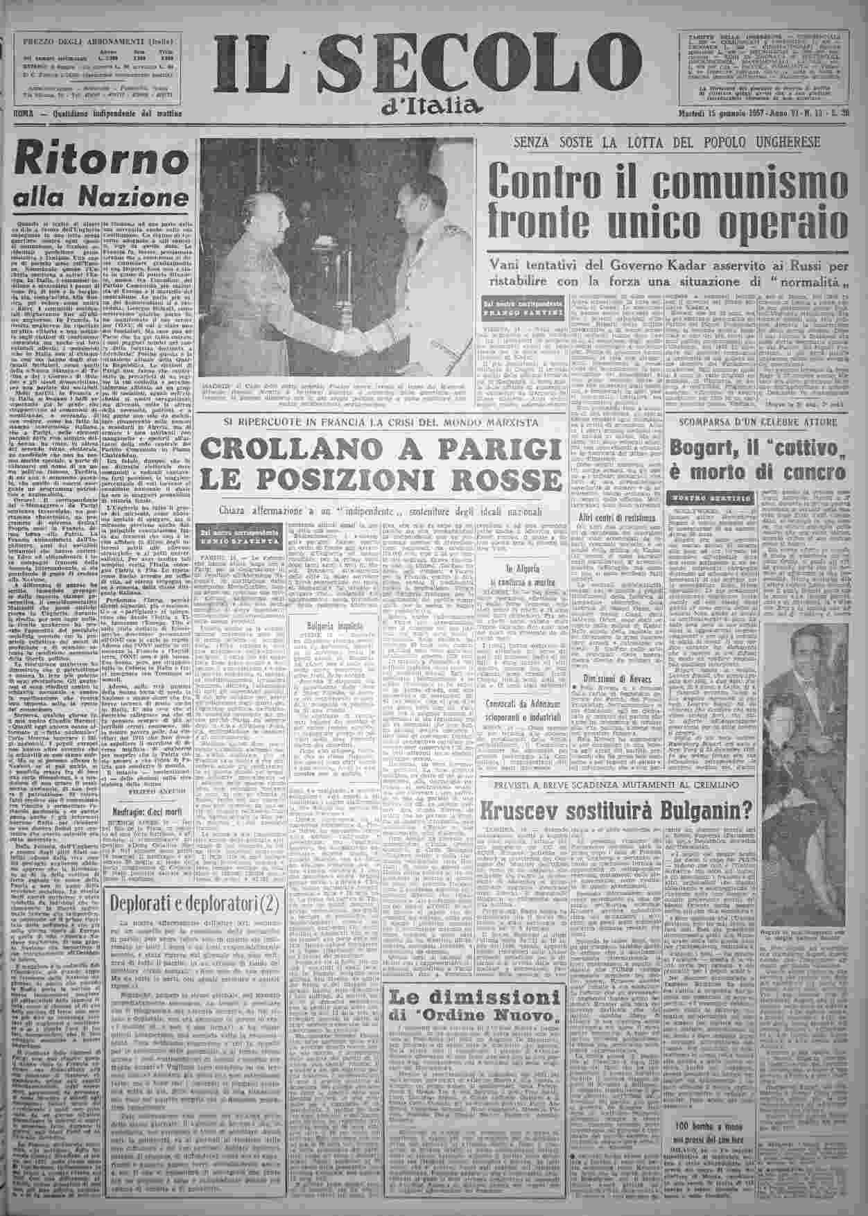martedì 15 gennaio 1957