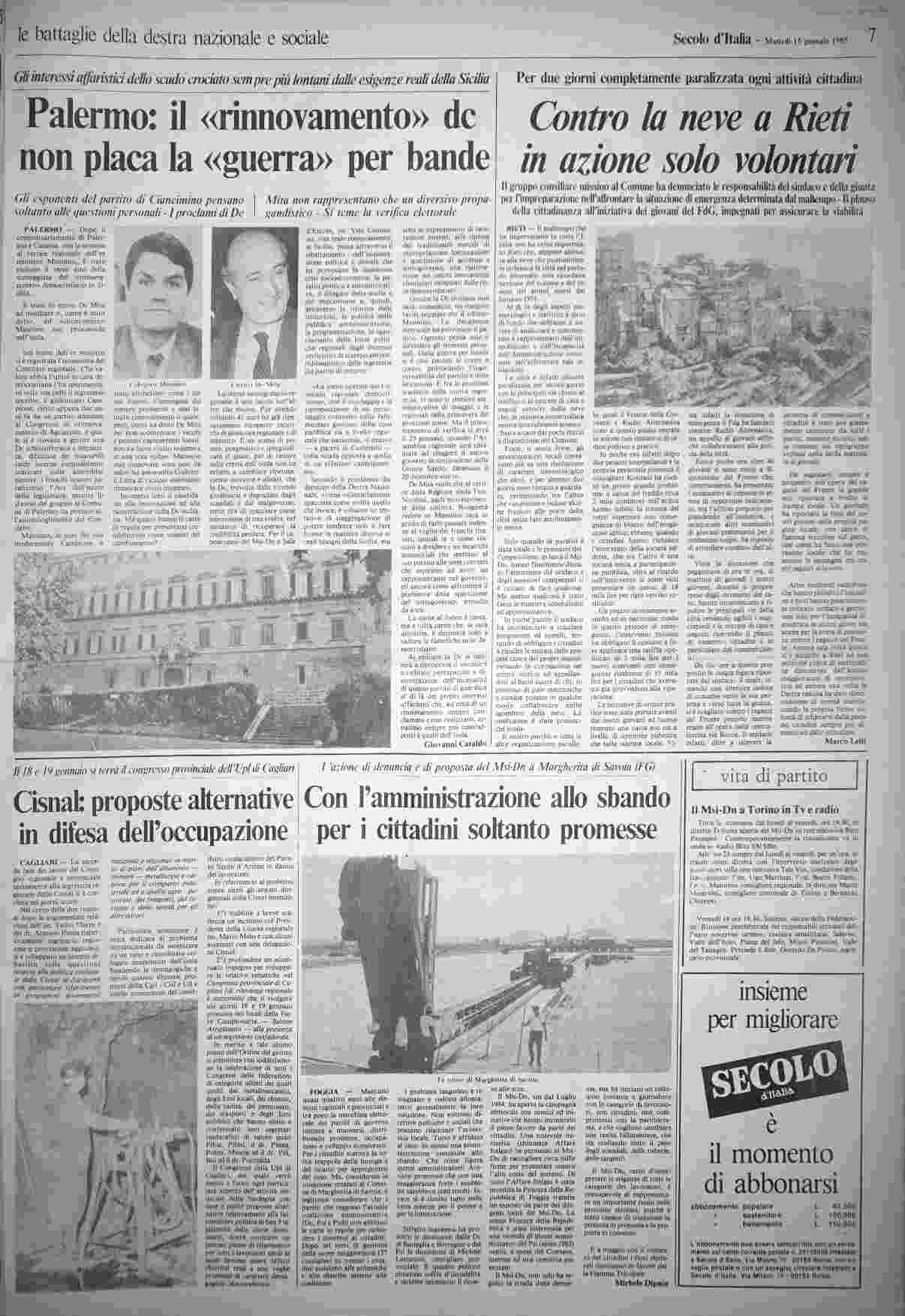 martedì 15 gennaio 1985