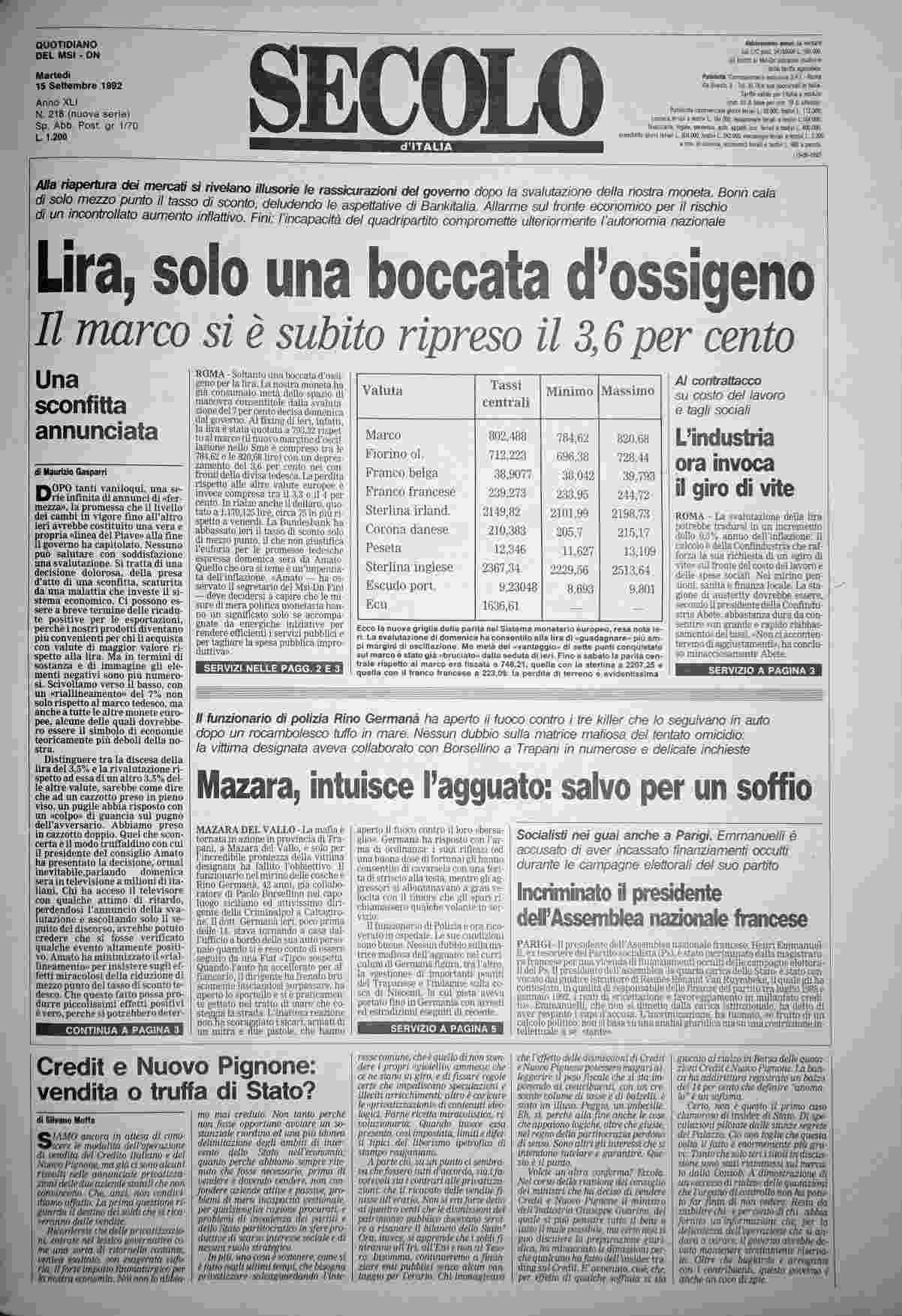 martedì 15 settembre 1992