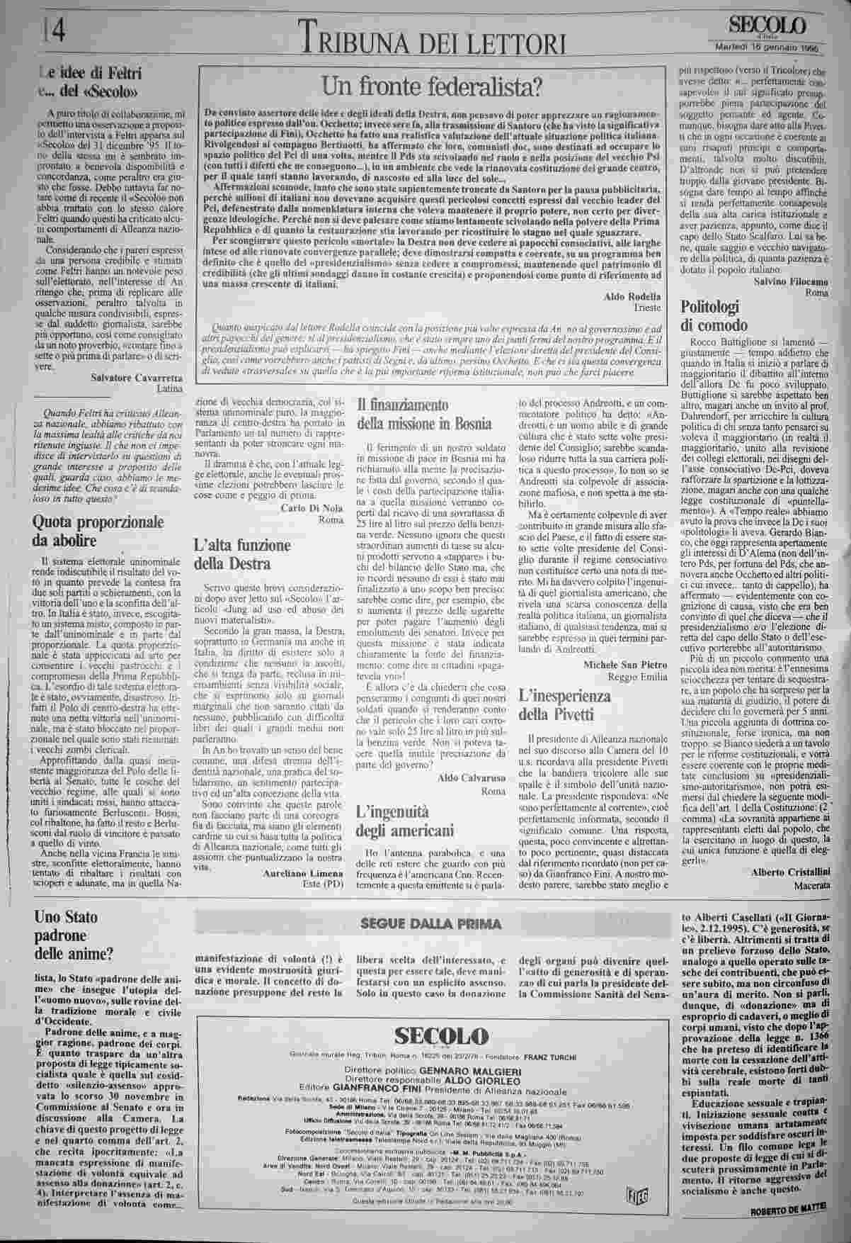 martedì 16 gennaio 1996