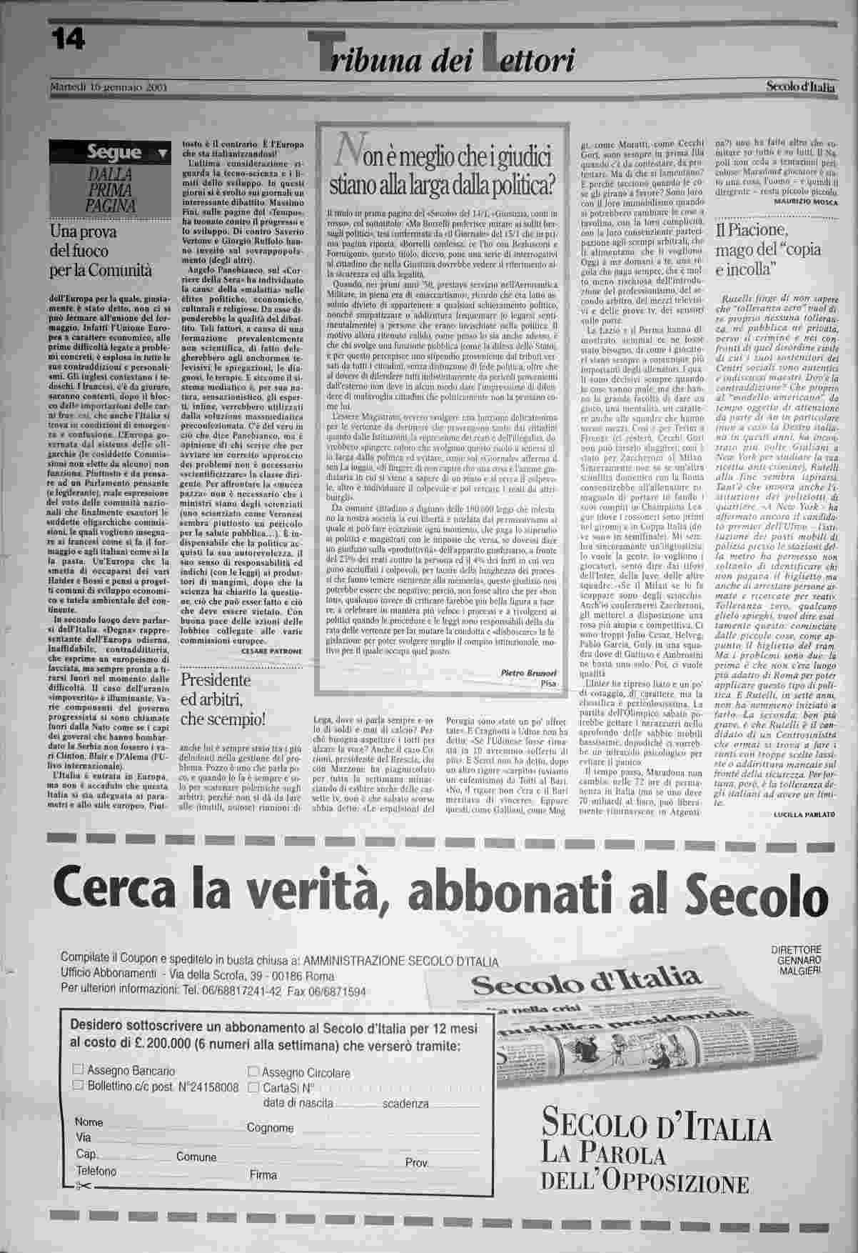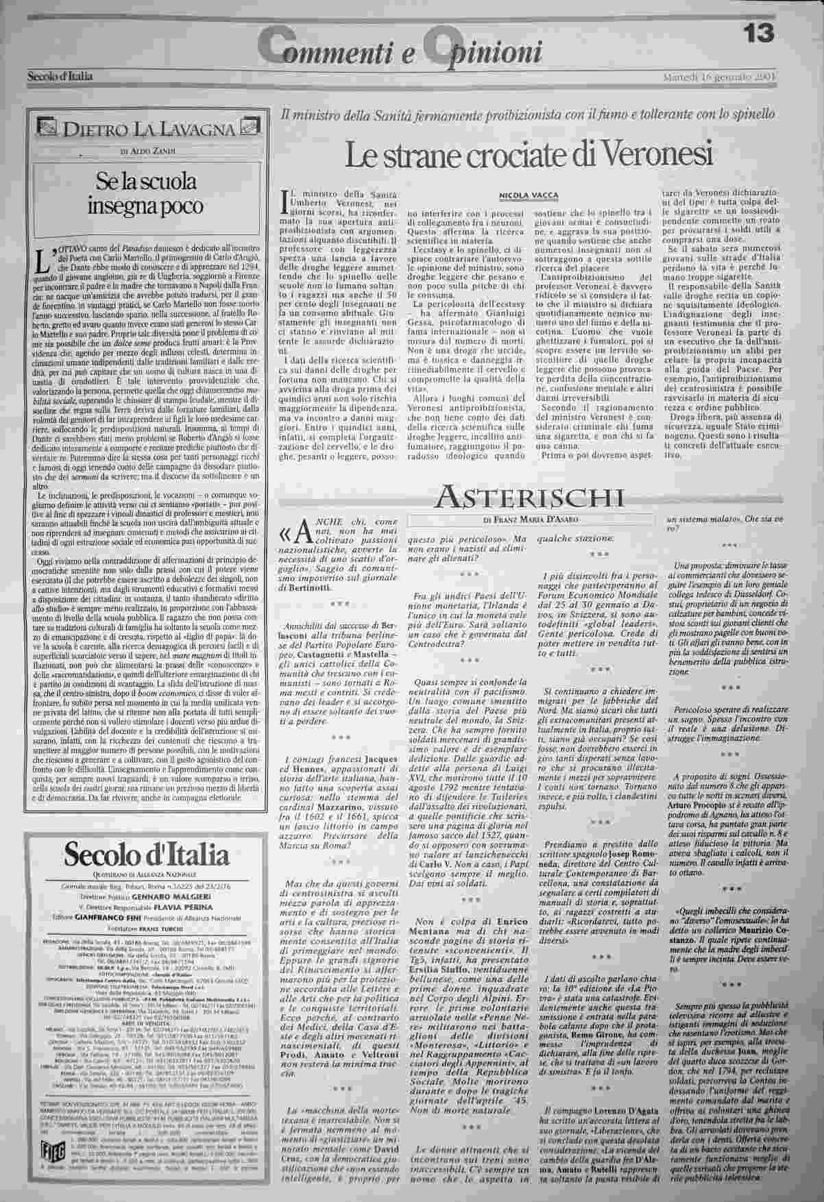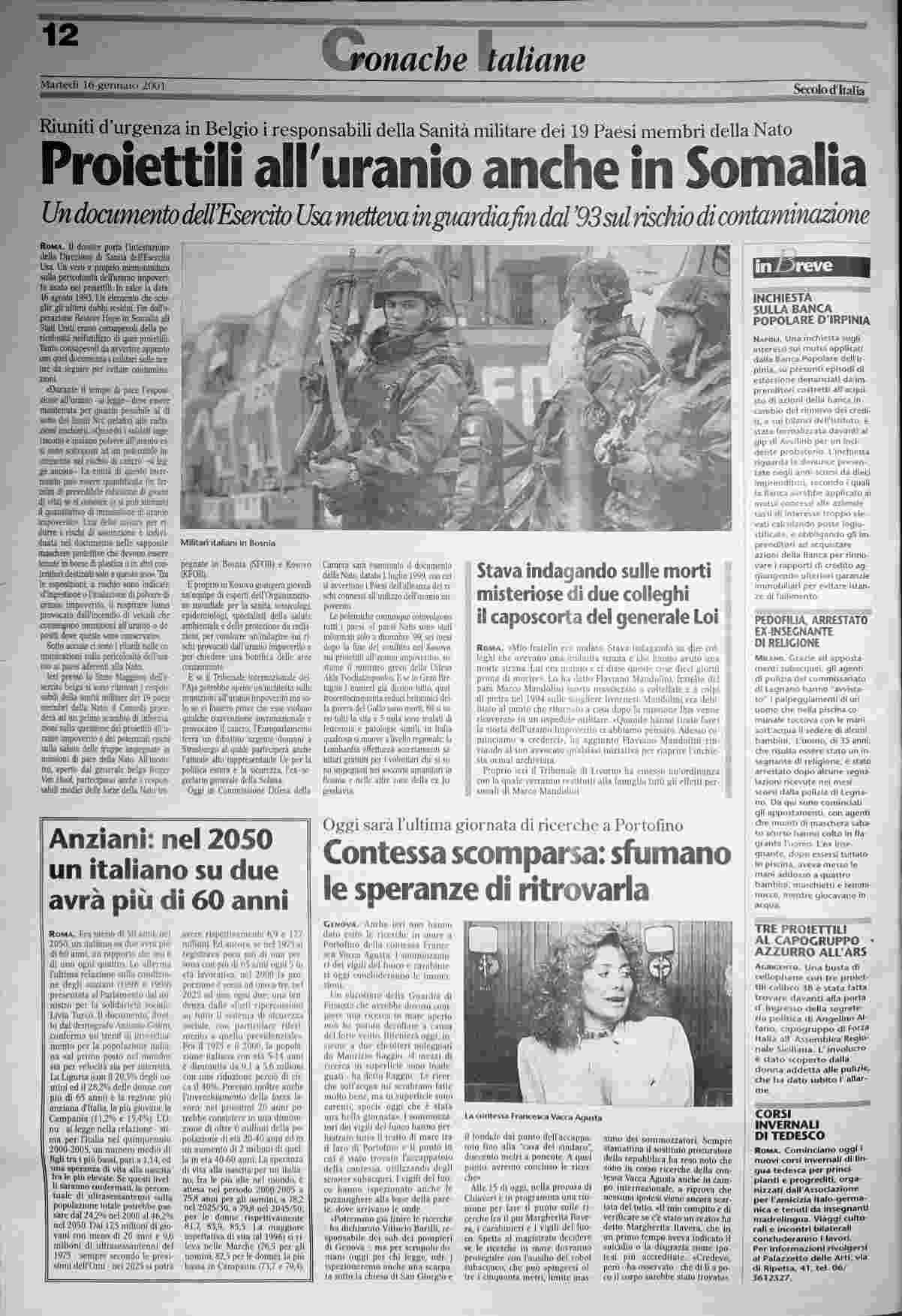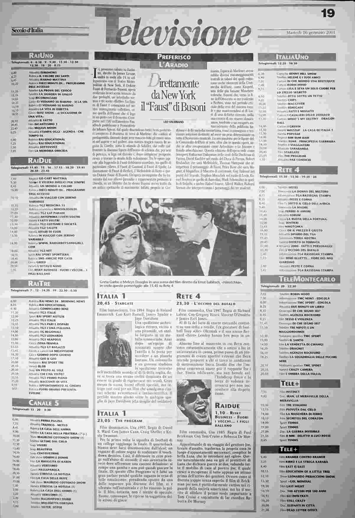 martedì 16 gennaio 2001