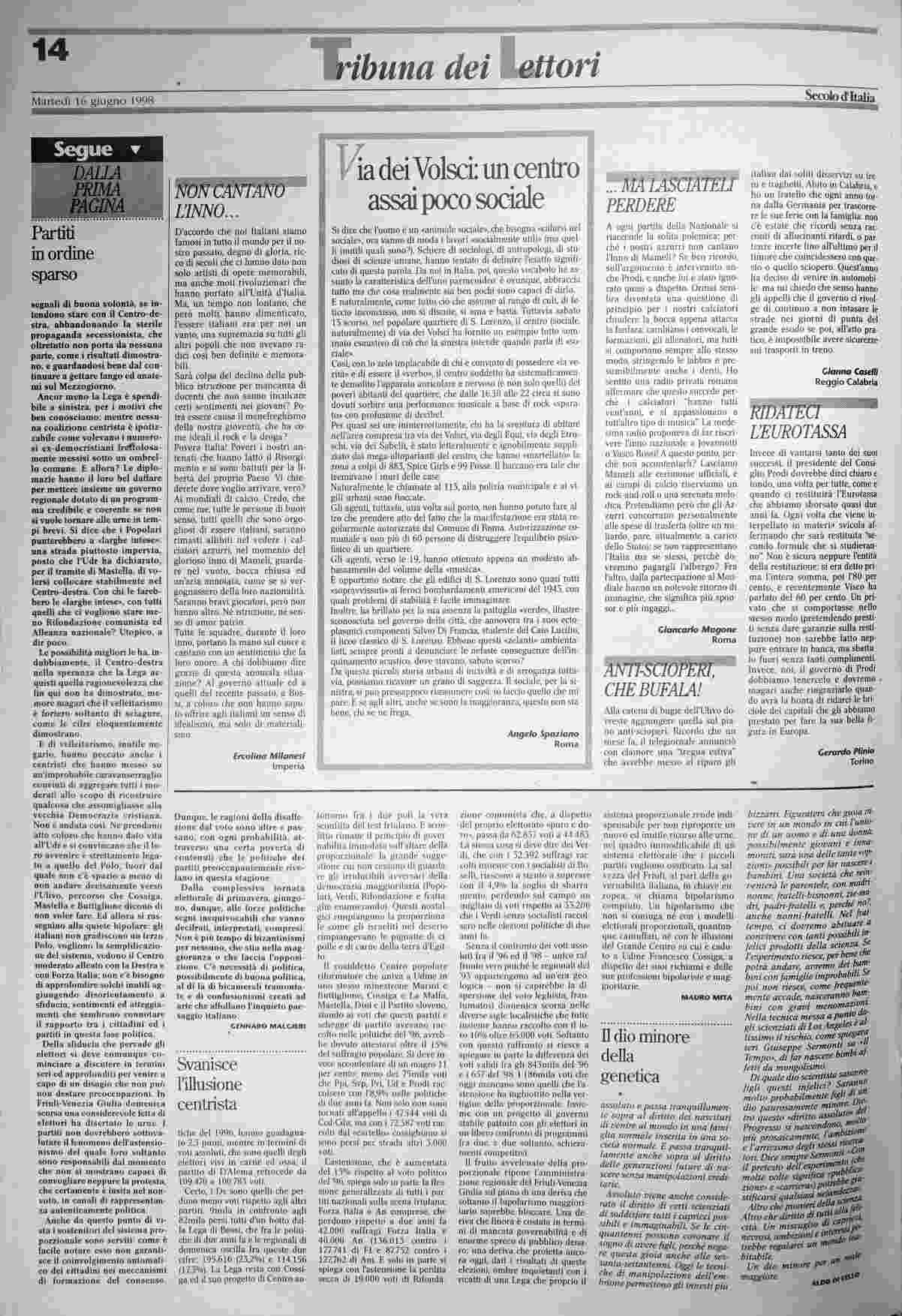 martedì 16 giugno 1998