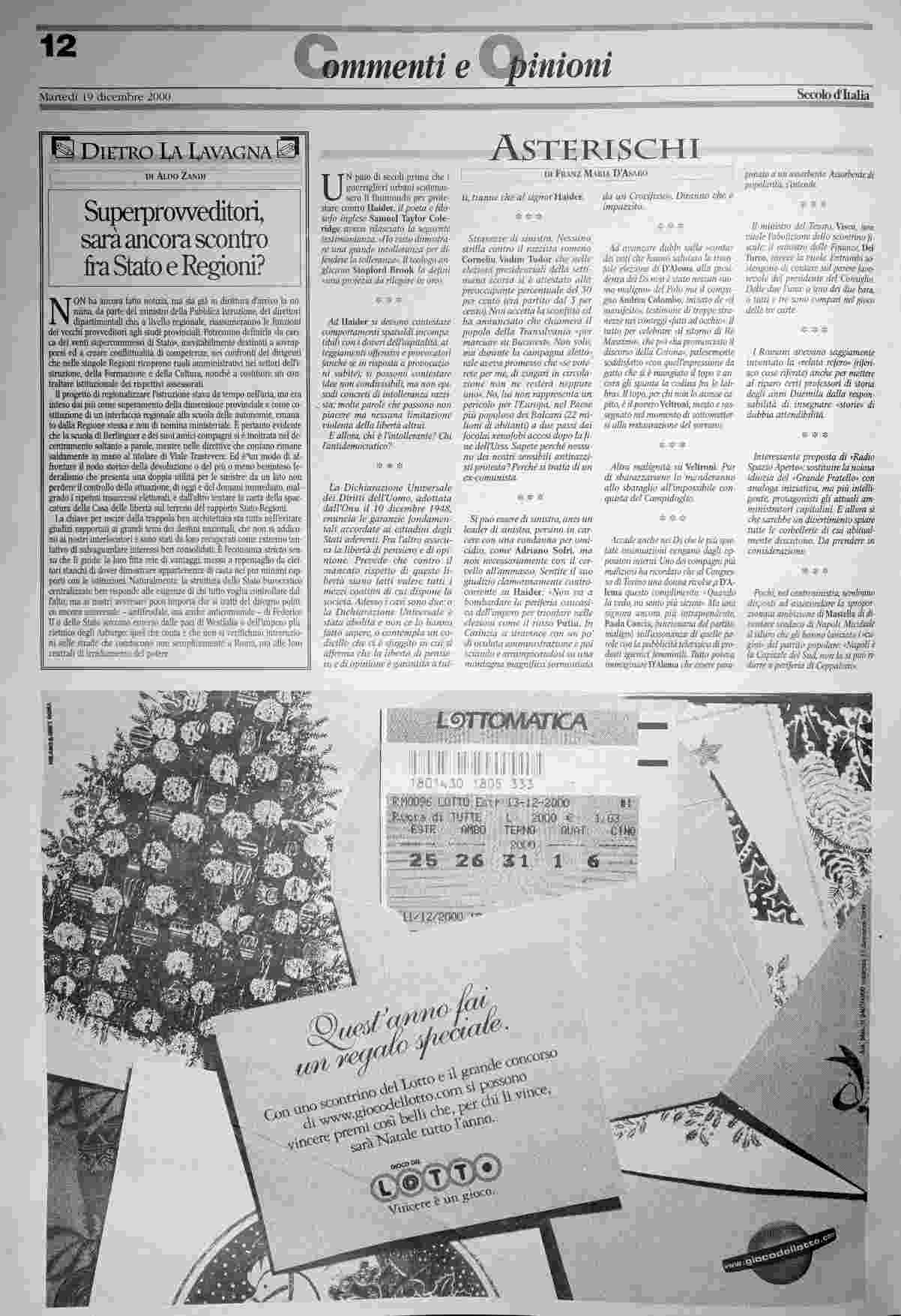martedì 19 dicembre 2000