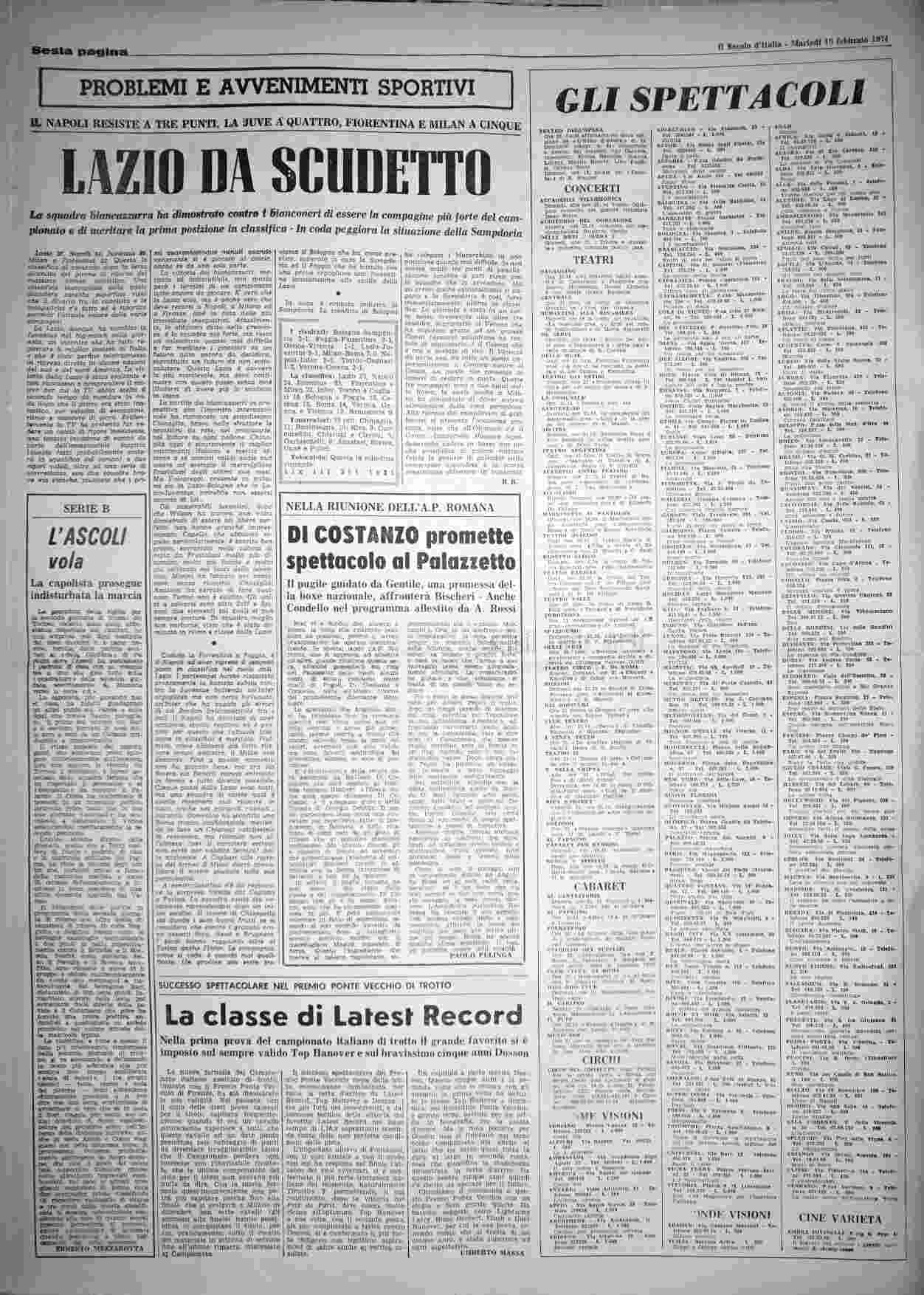 martedì 19 febbraio 1974
