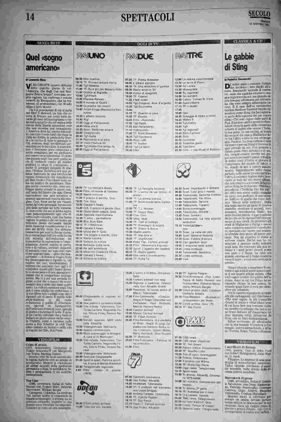 martedì 19 febbraio 1991