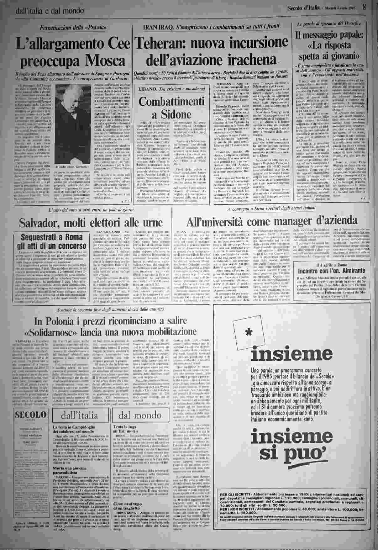 martedì 2 aprile 1985