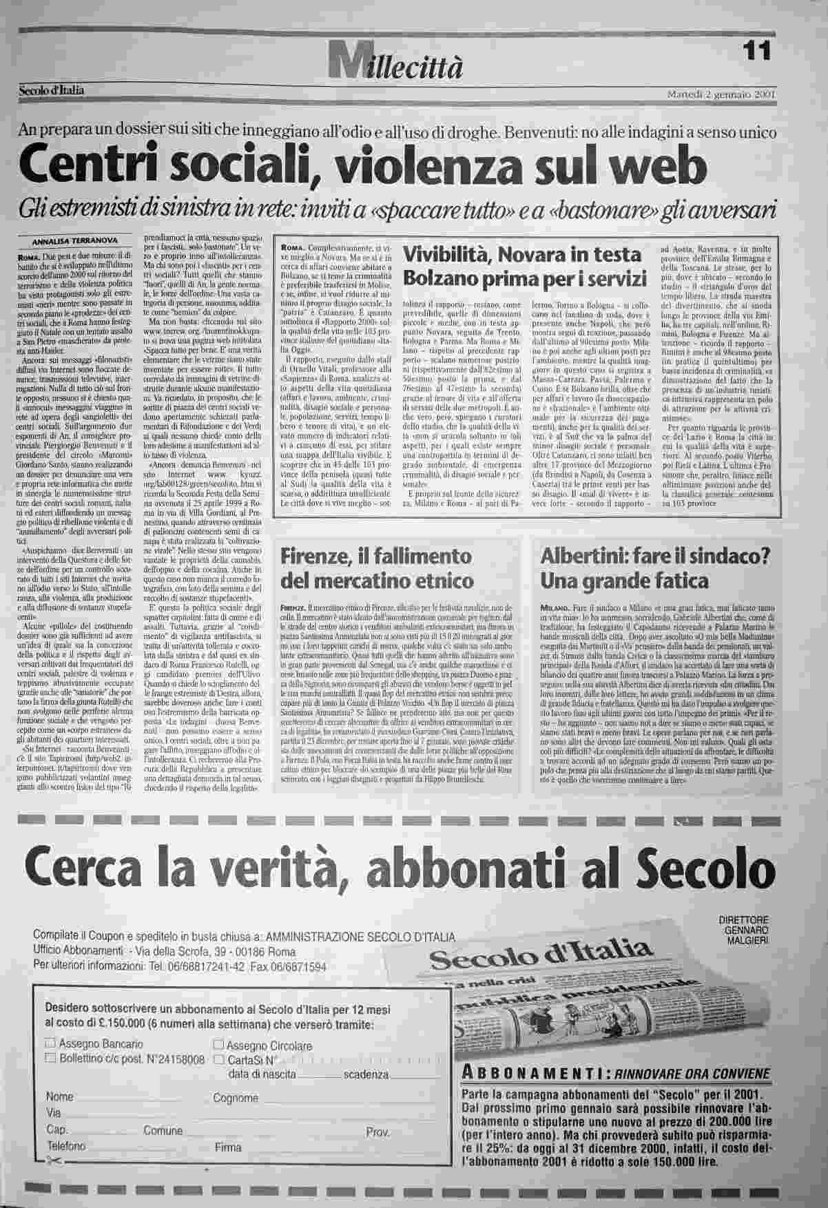 martedì 2 gennaio 2001