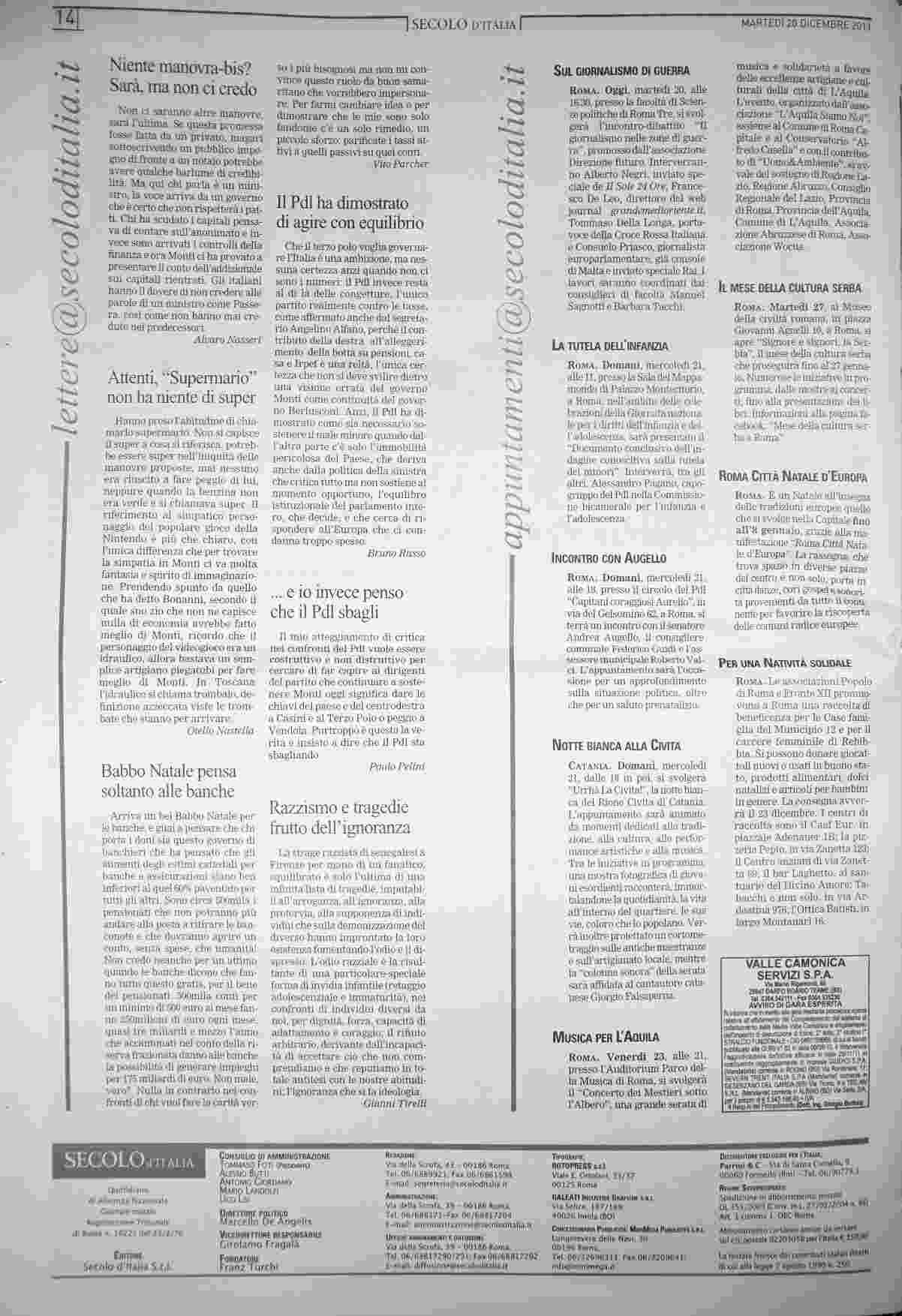 martedì 20 dicembre 2011