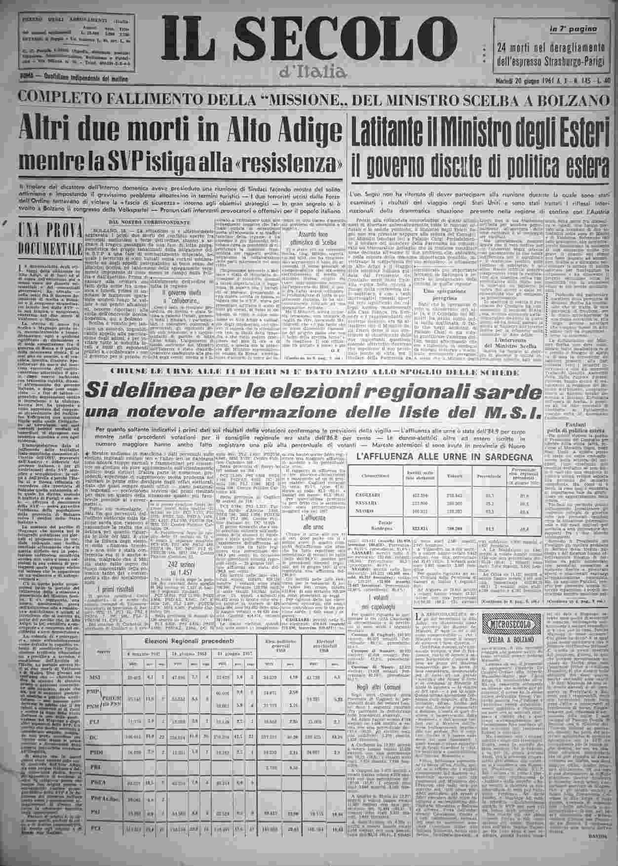 martedì 20 giugno 1961