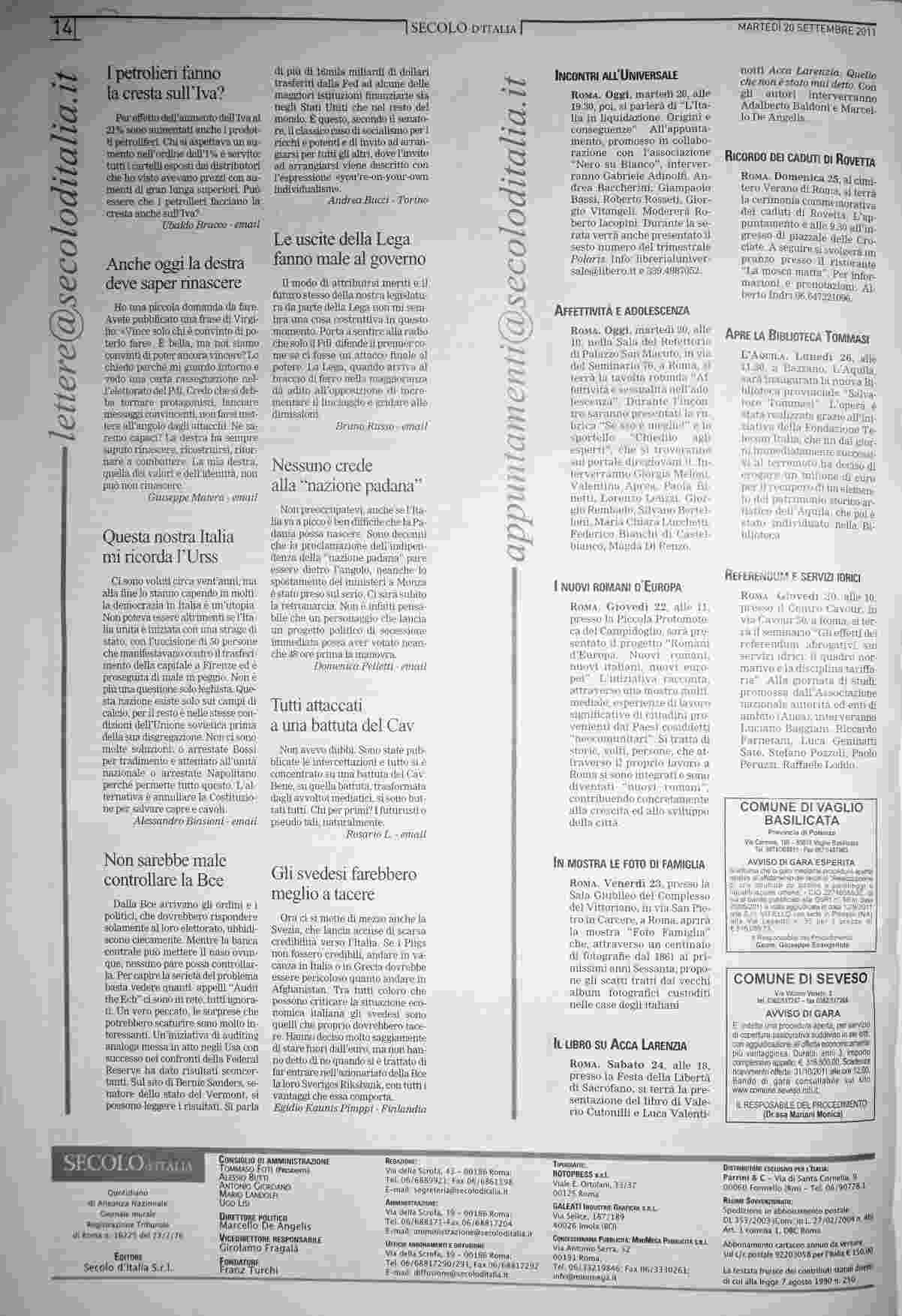martedì 20 settembre 2011