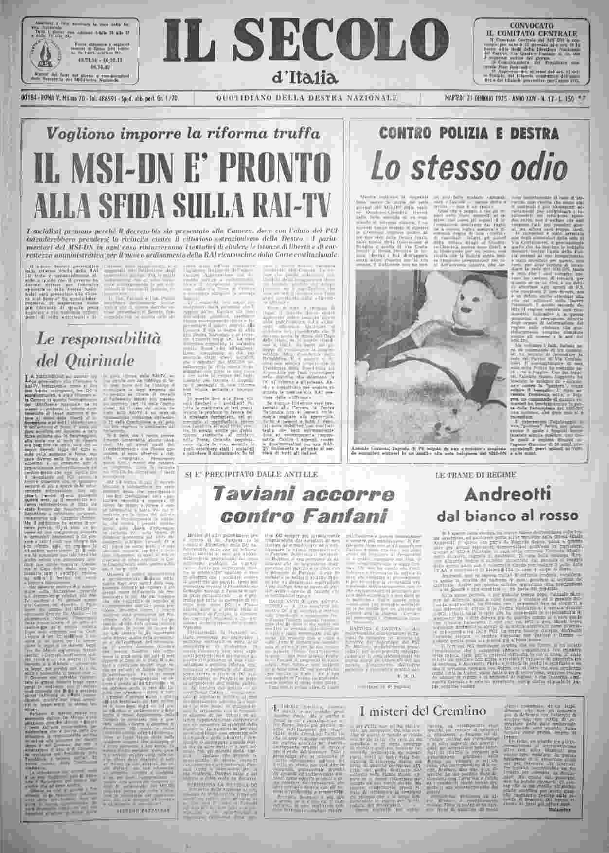 martedì 21 gennaio 1975