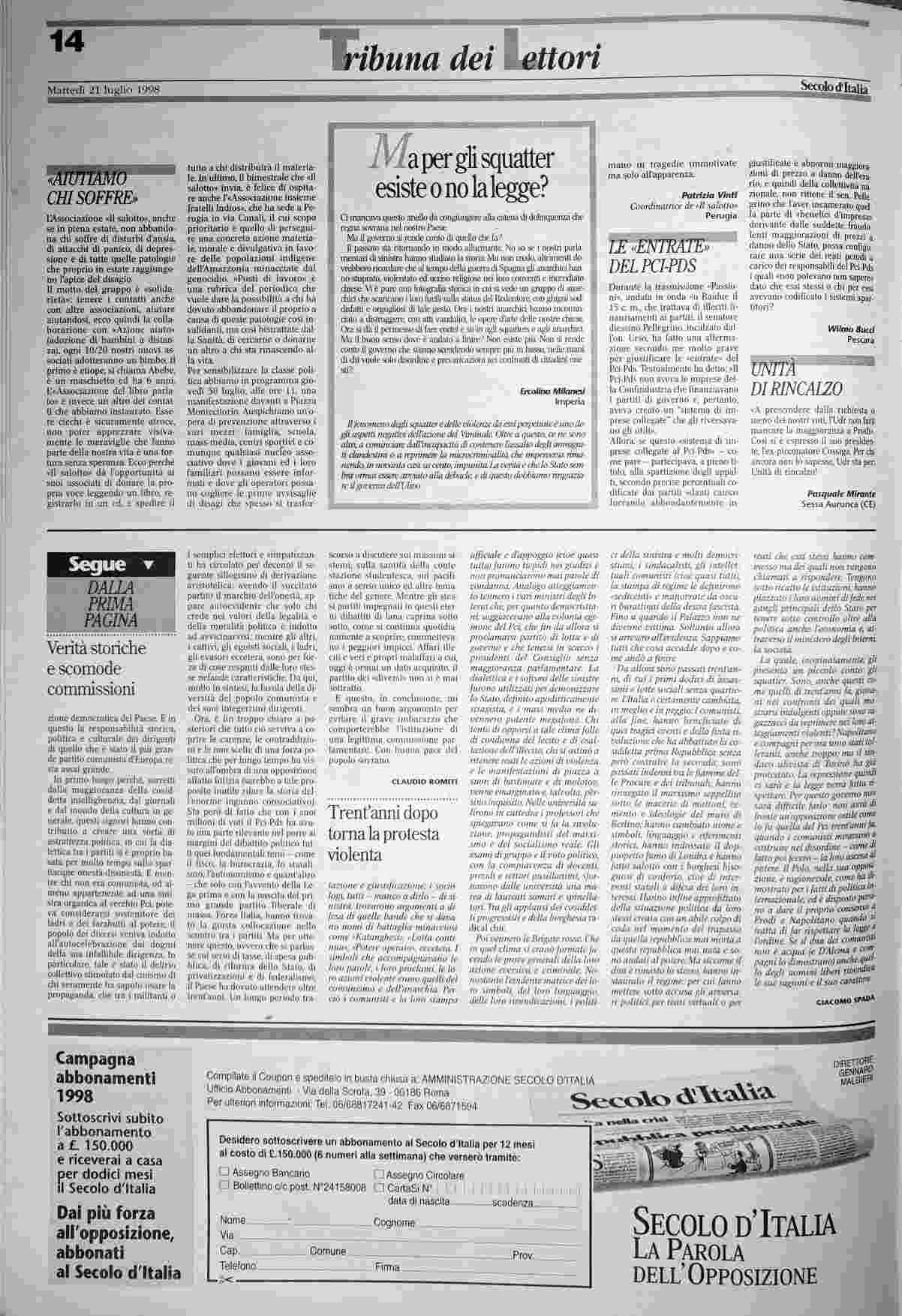 martedì 21 luglio 1998