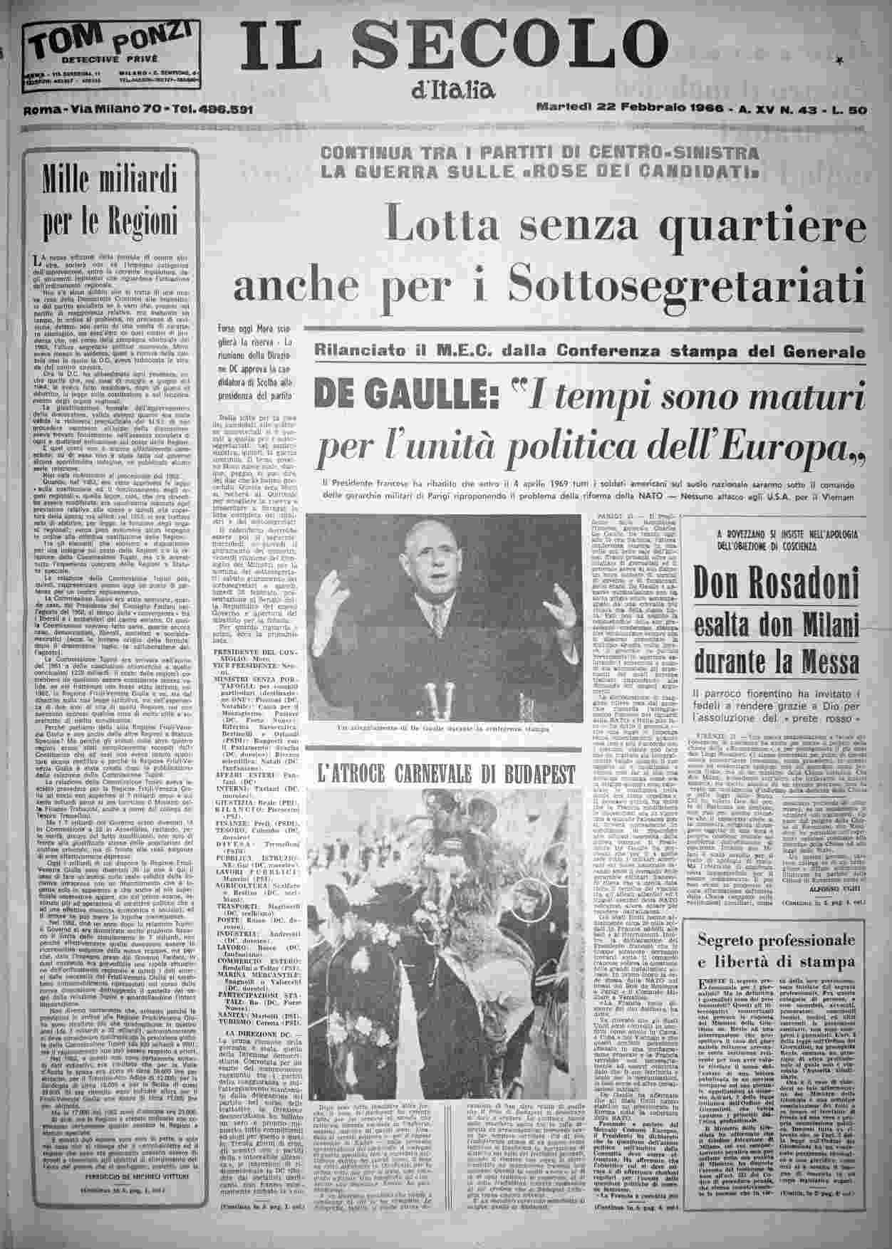 martedì 22 febbraio 1966