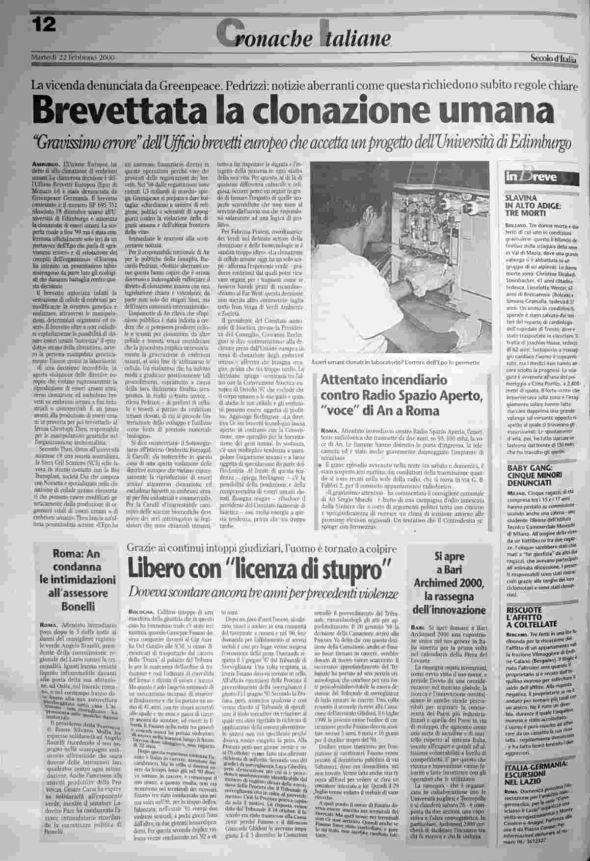 martedì 22 febbraio 2000