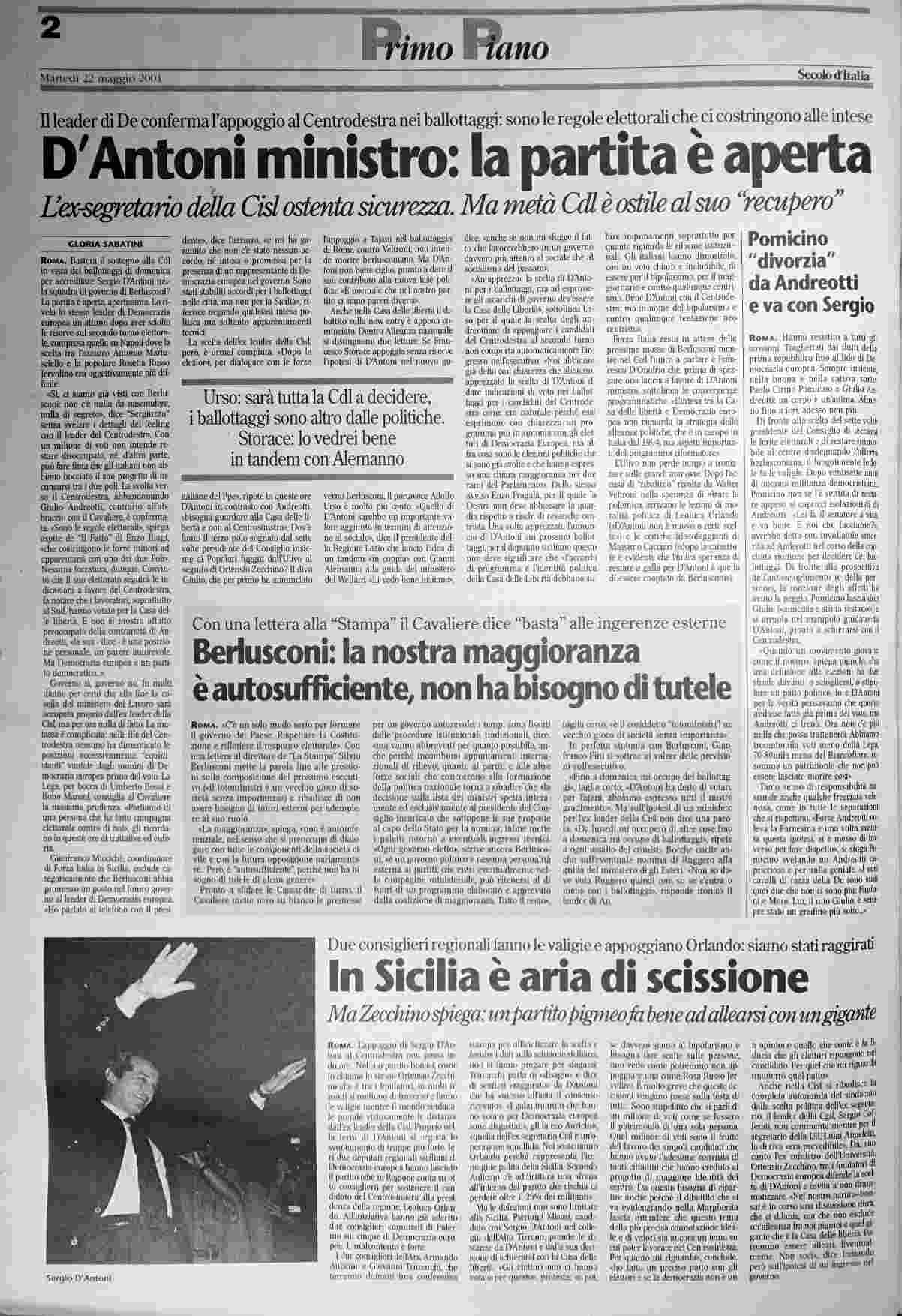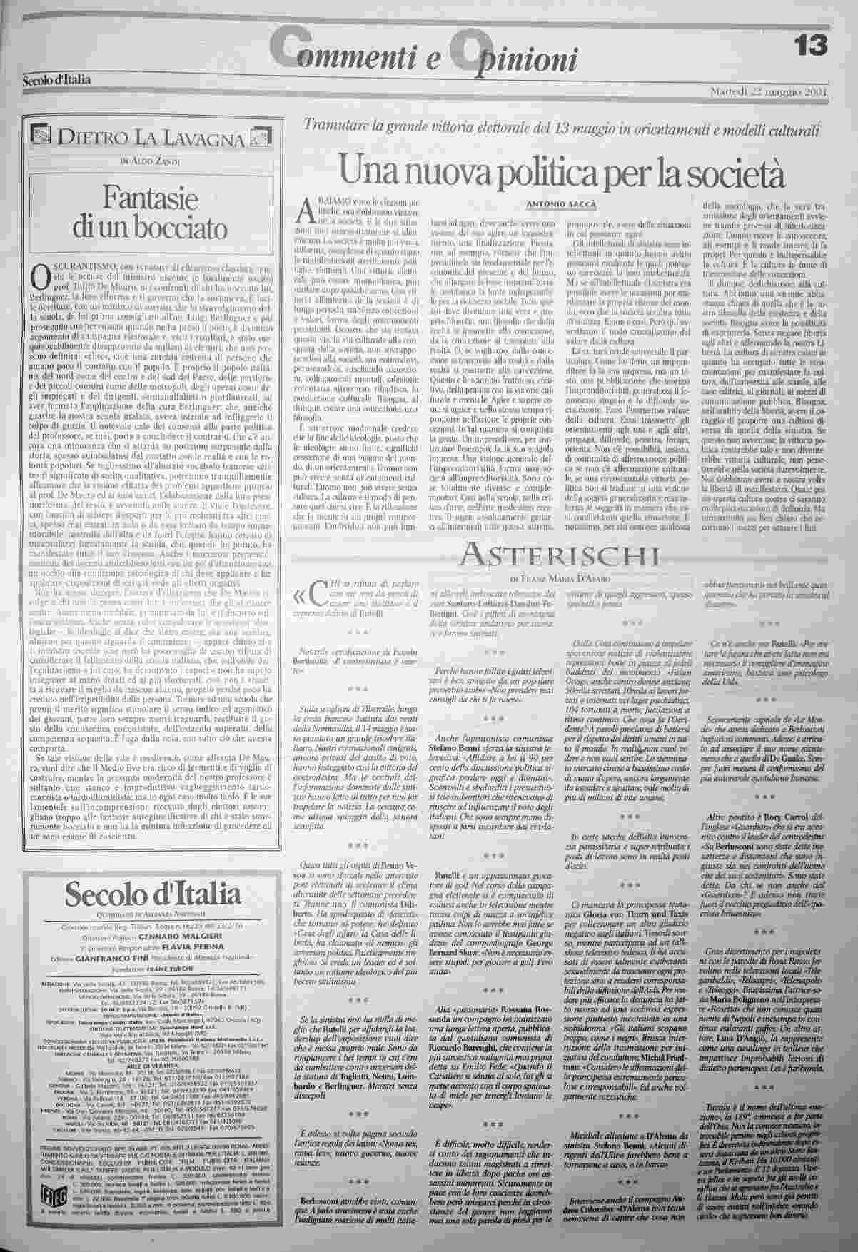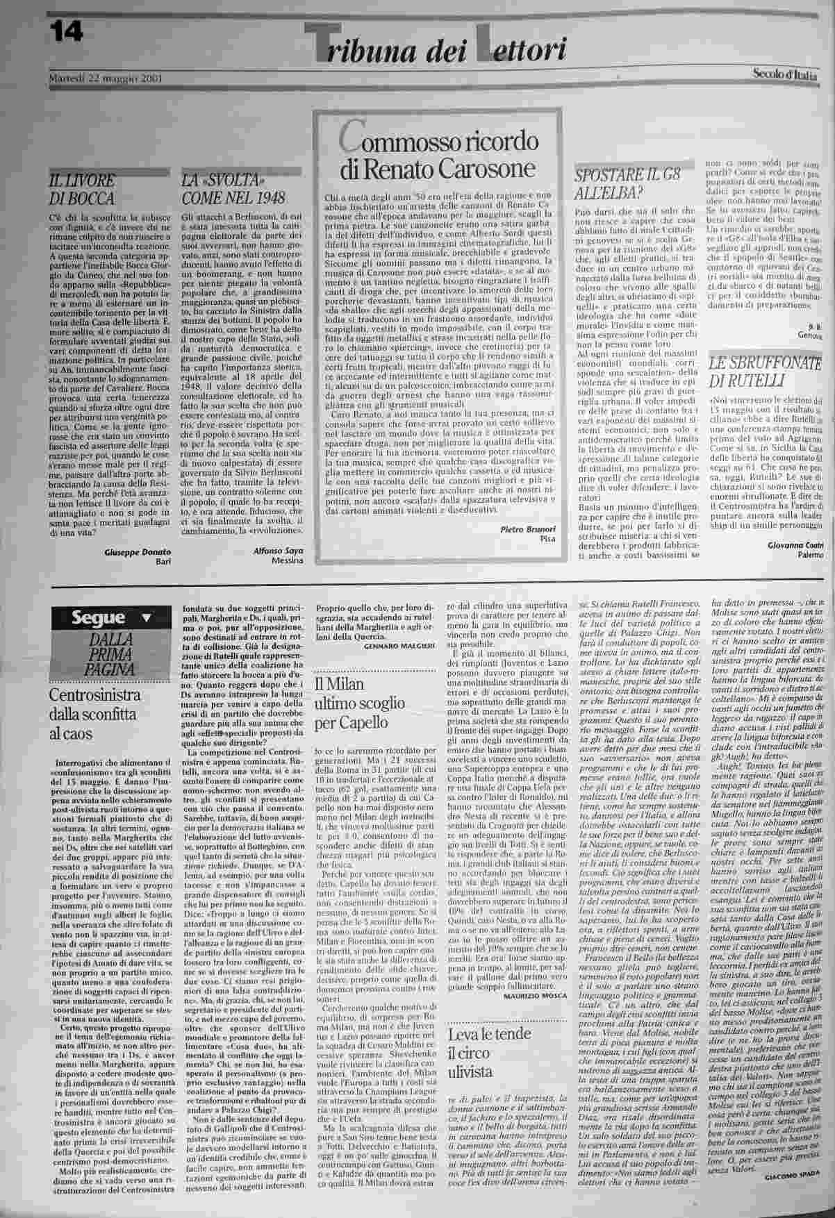 martedì 22 maggio 2001