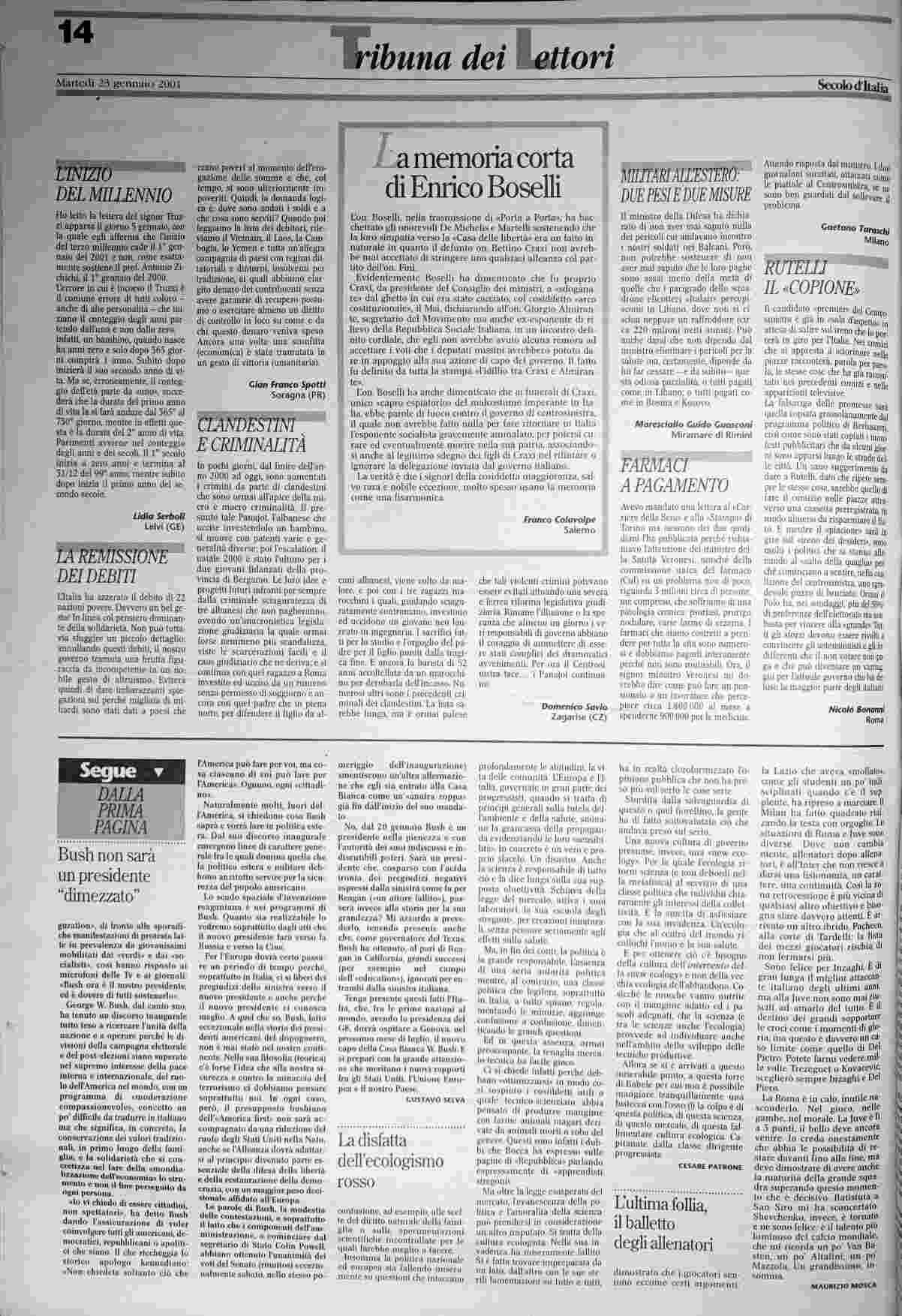 martedì 23 gennaio 2001