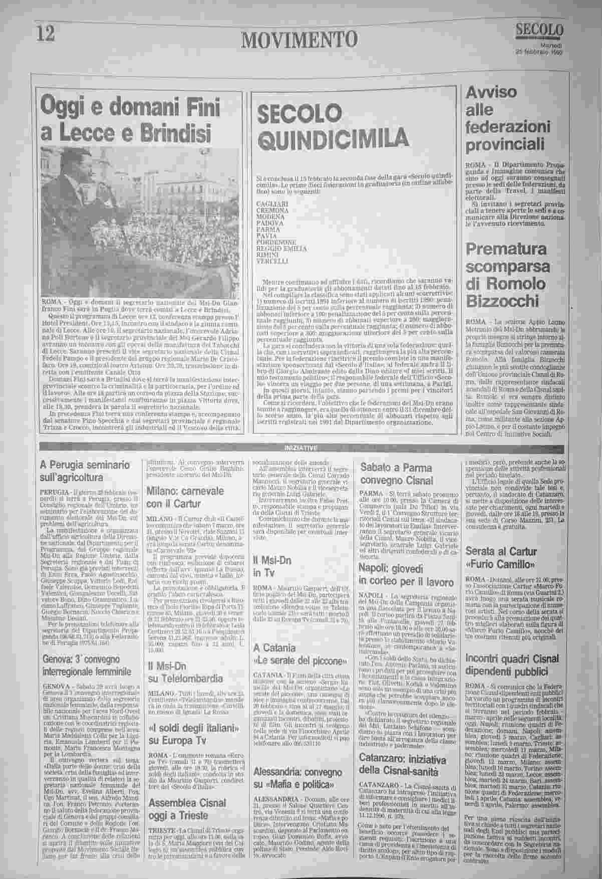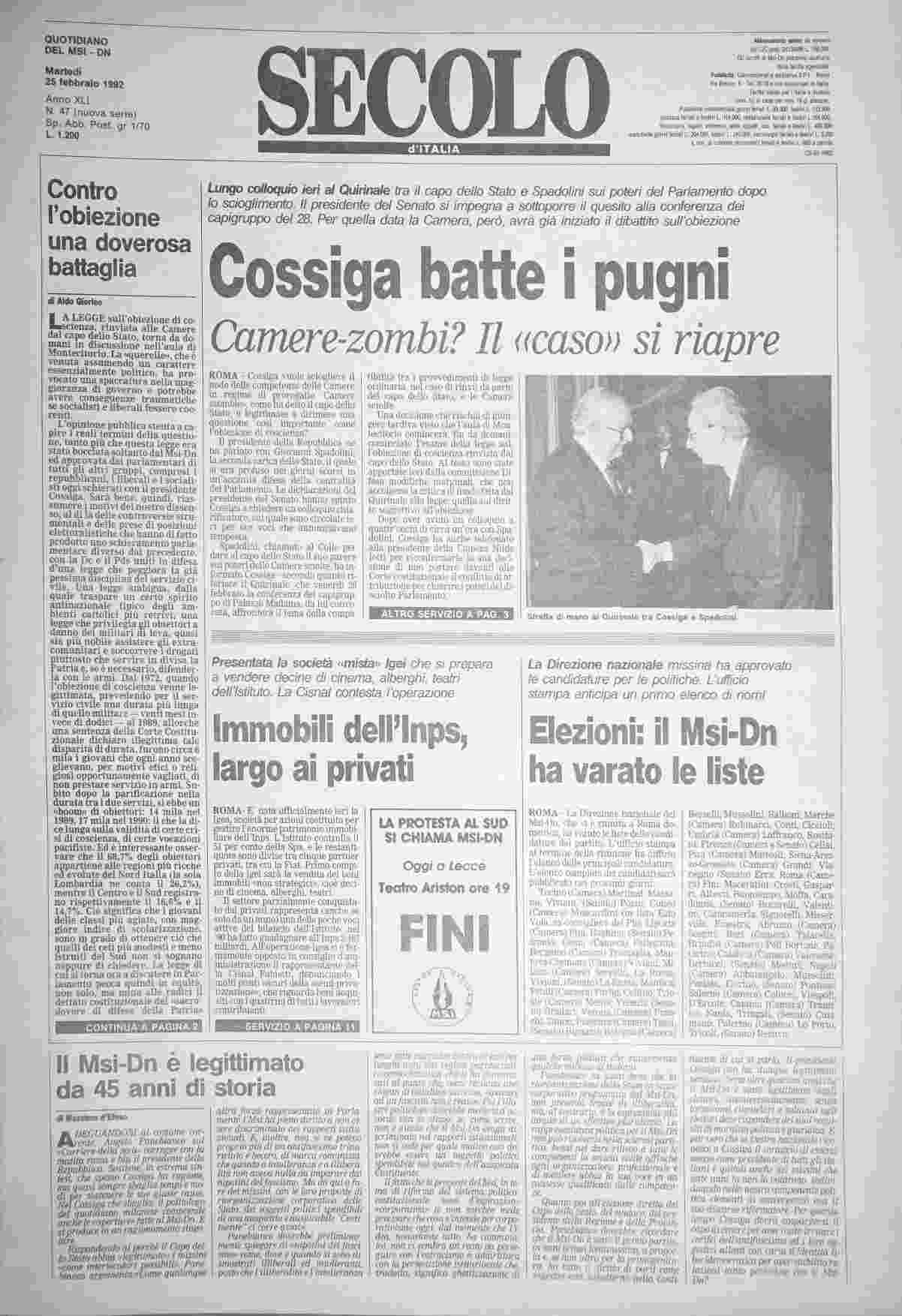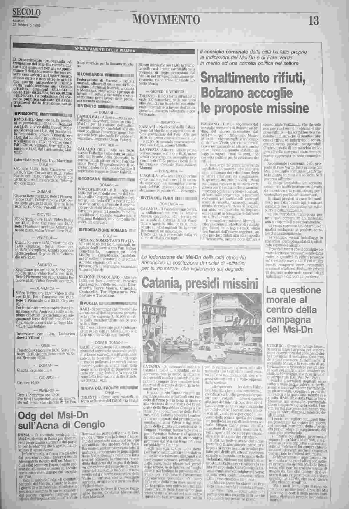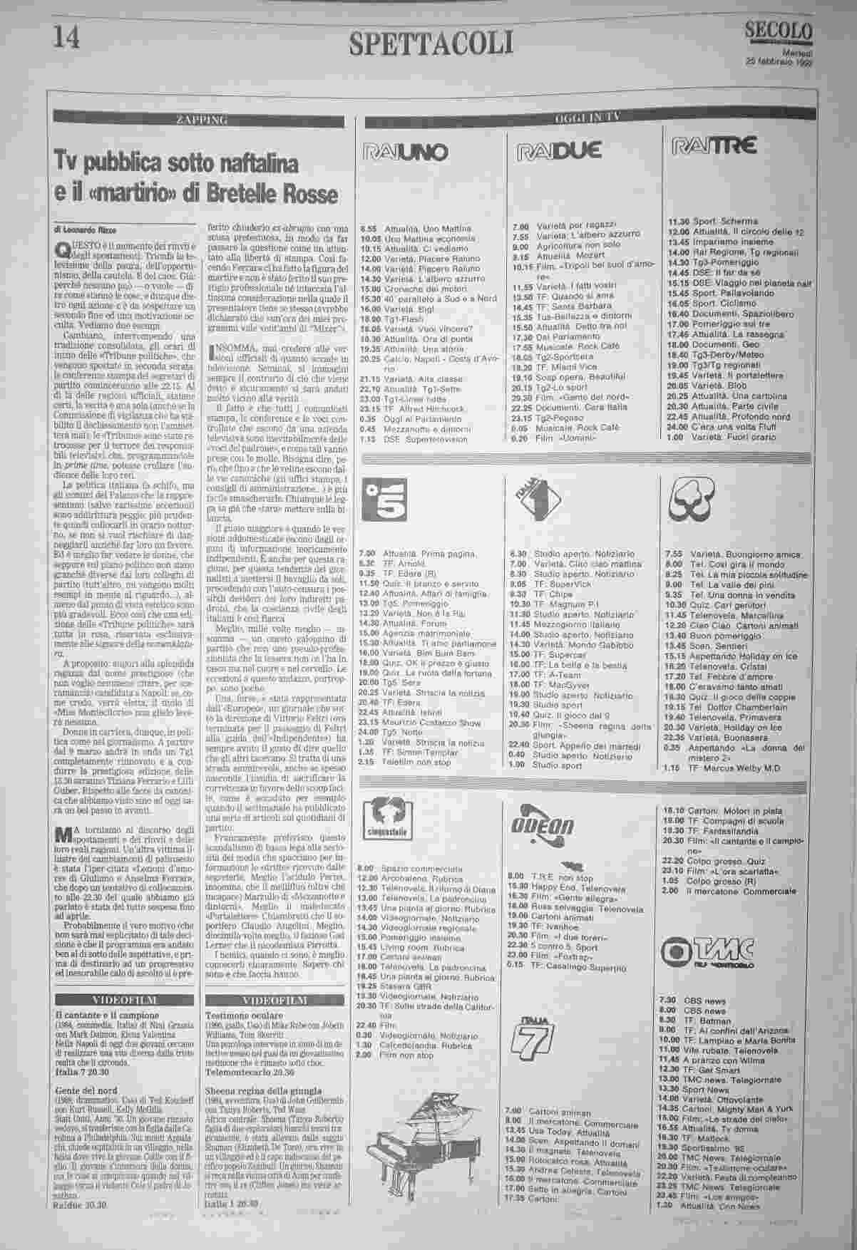 martedì 25 febbraio 1992
