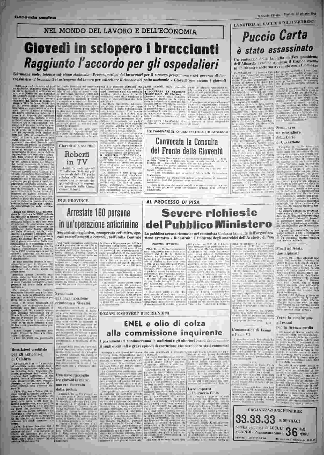martedì 25 giugno 1974
