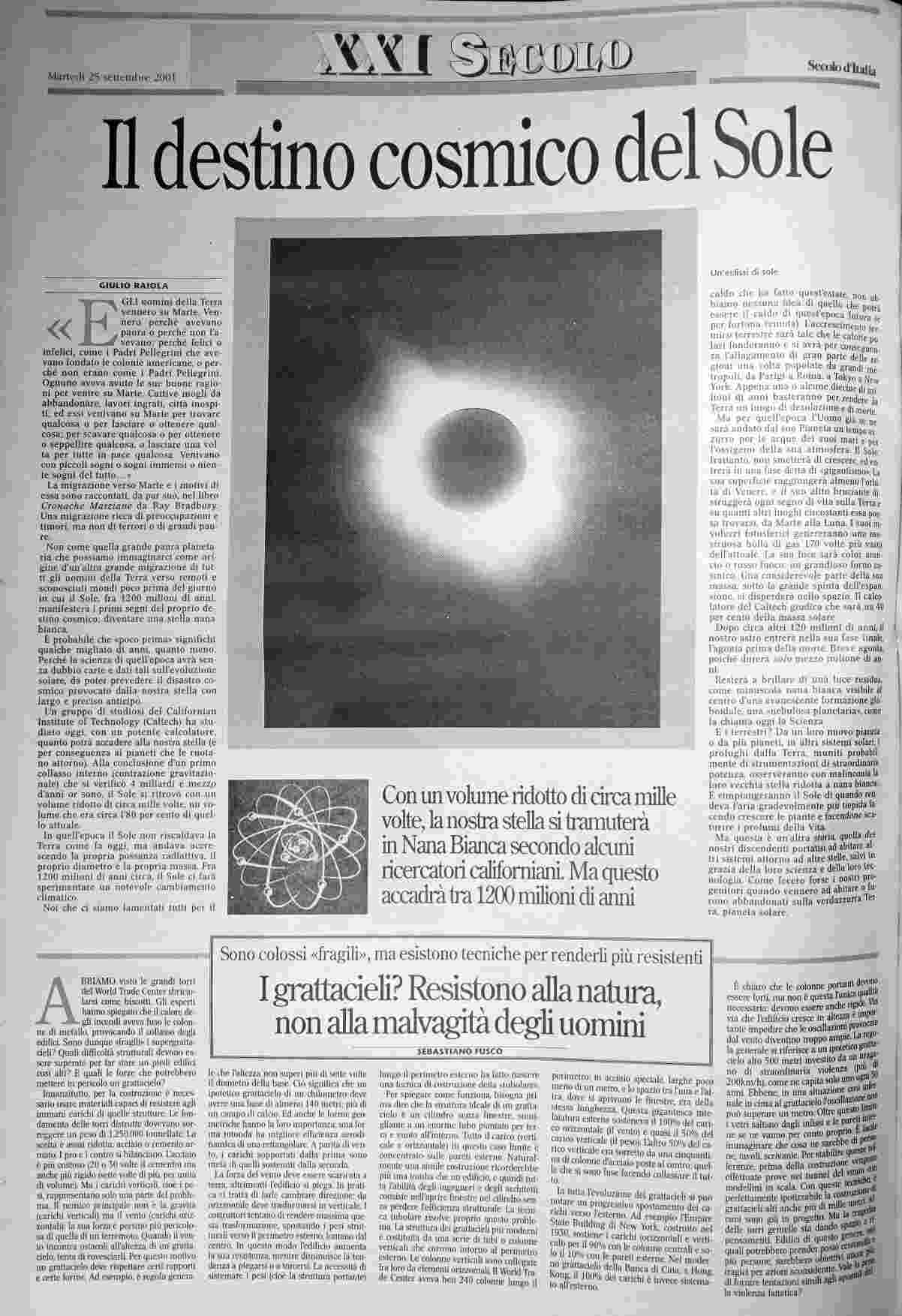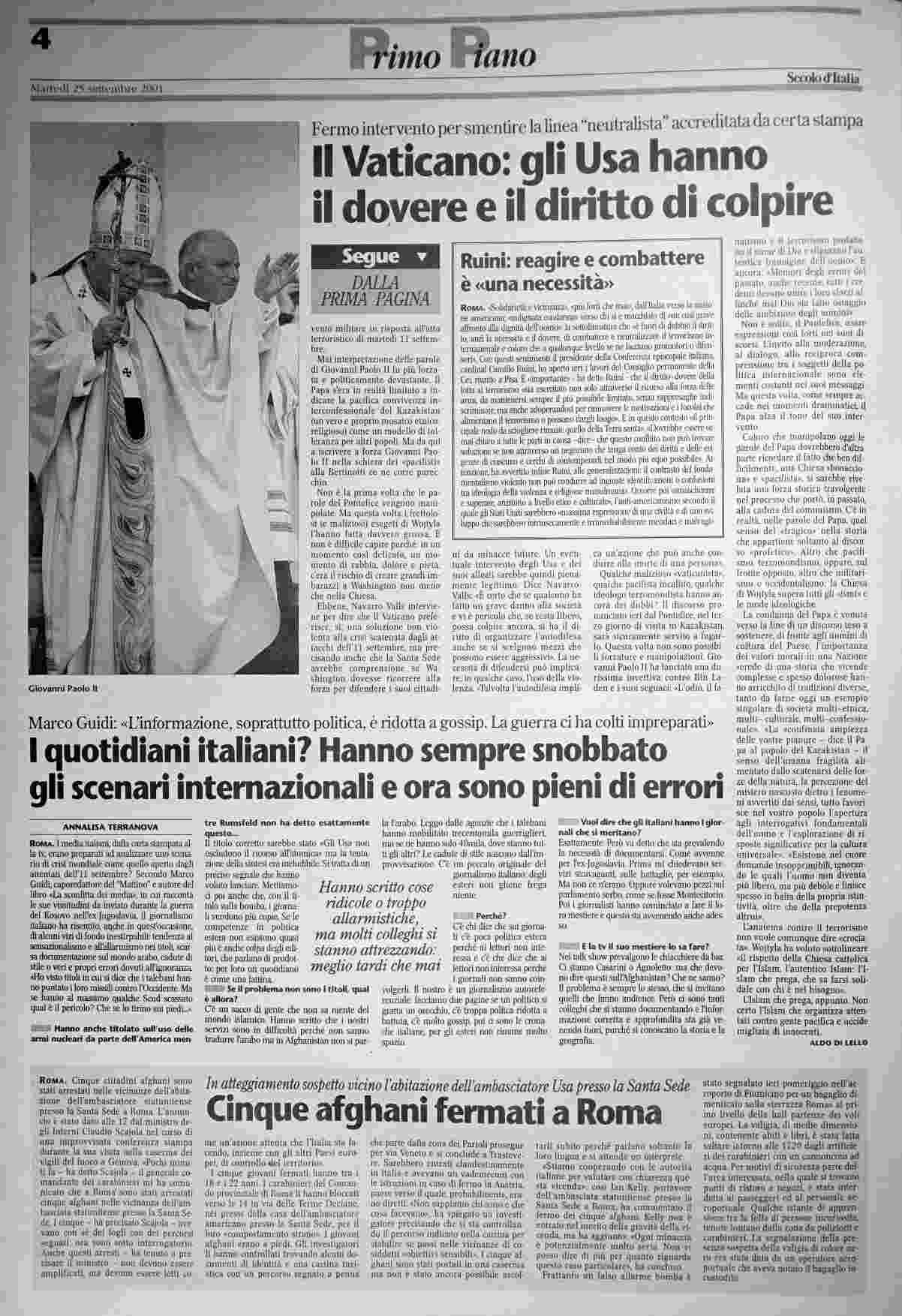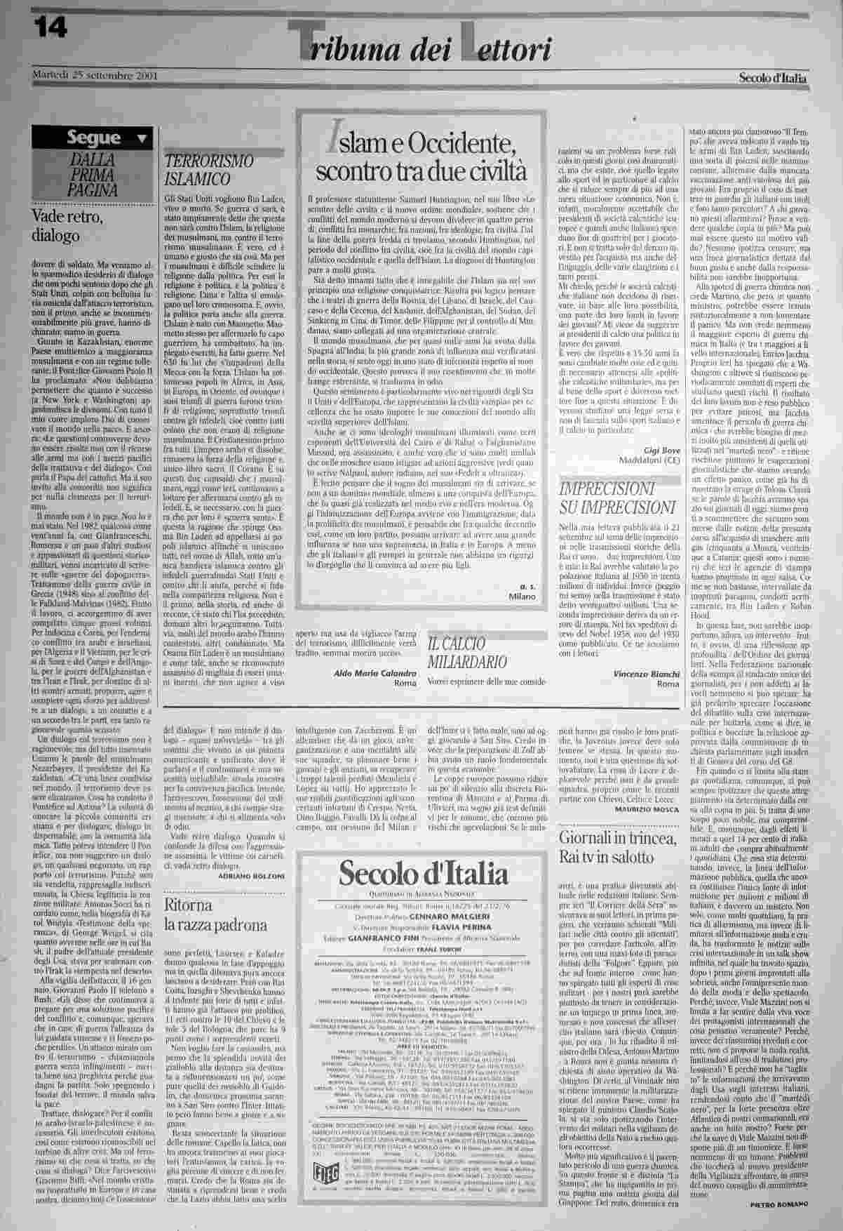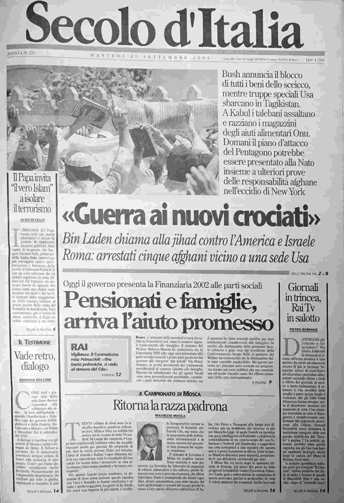 martedì 25 settembre 2001