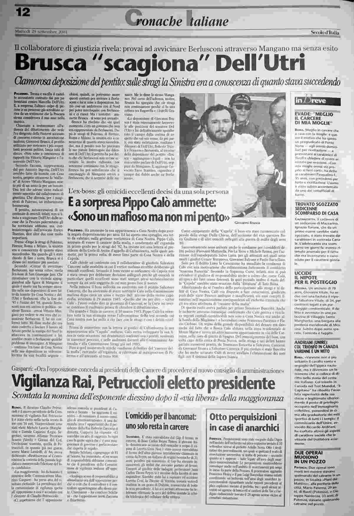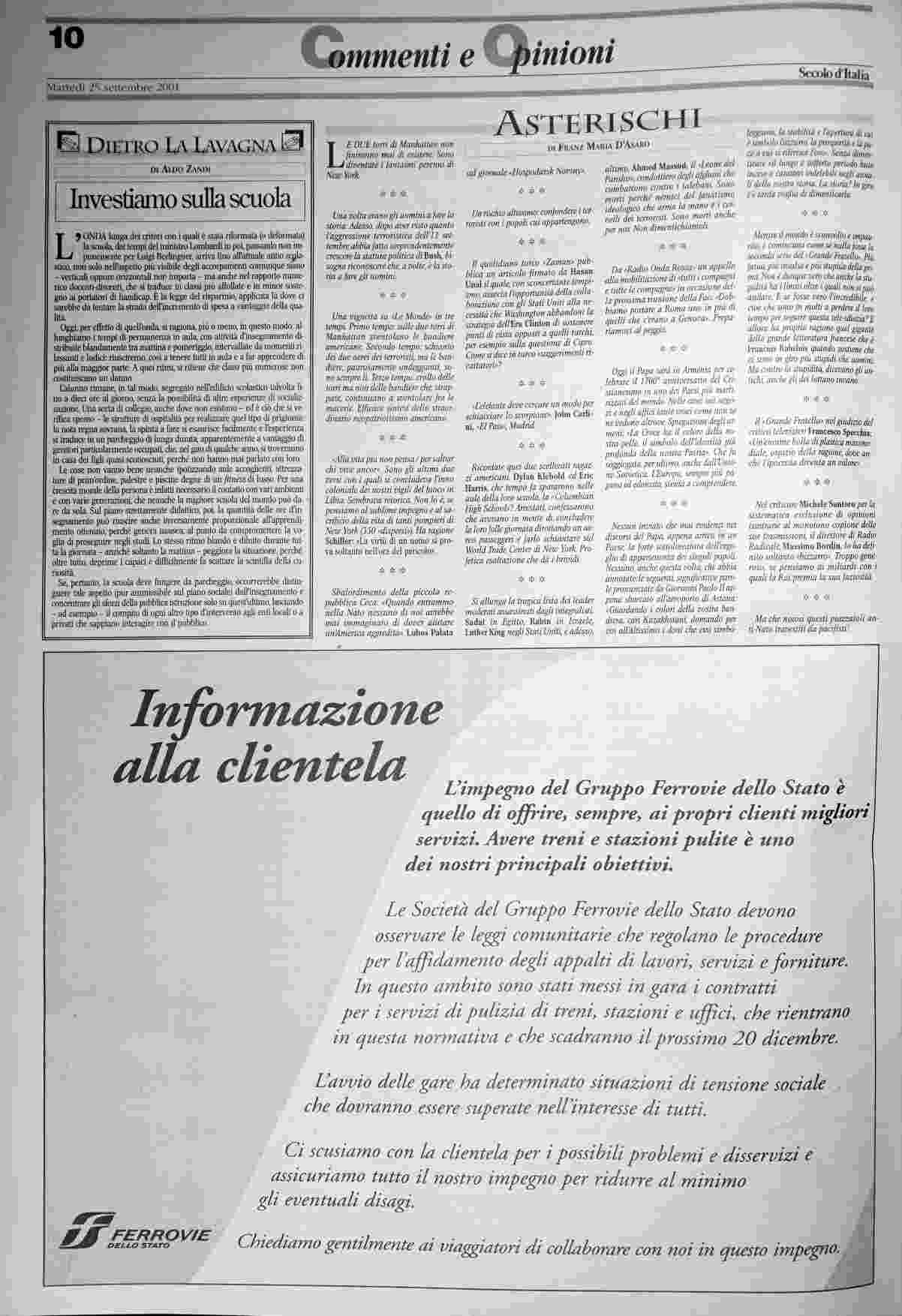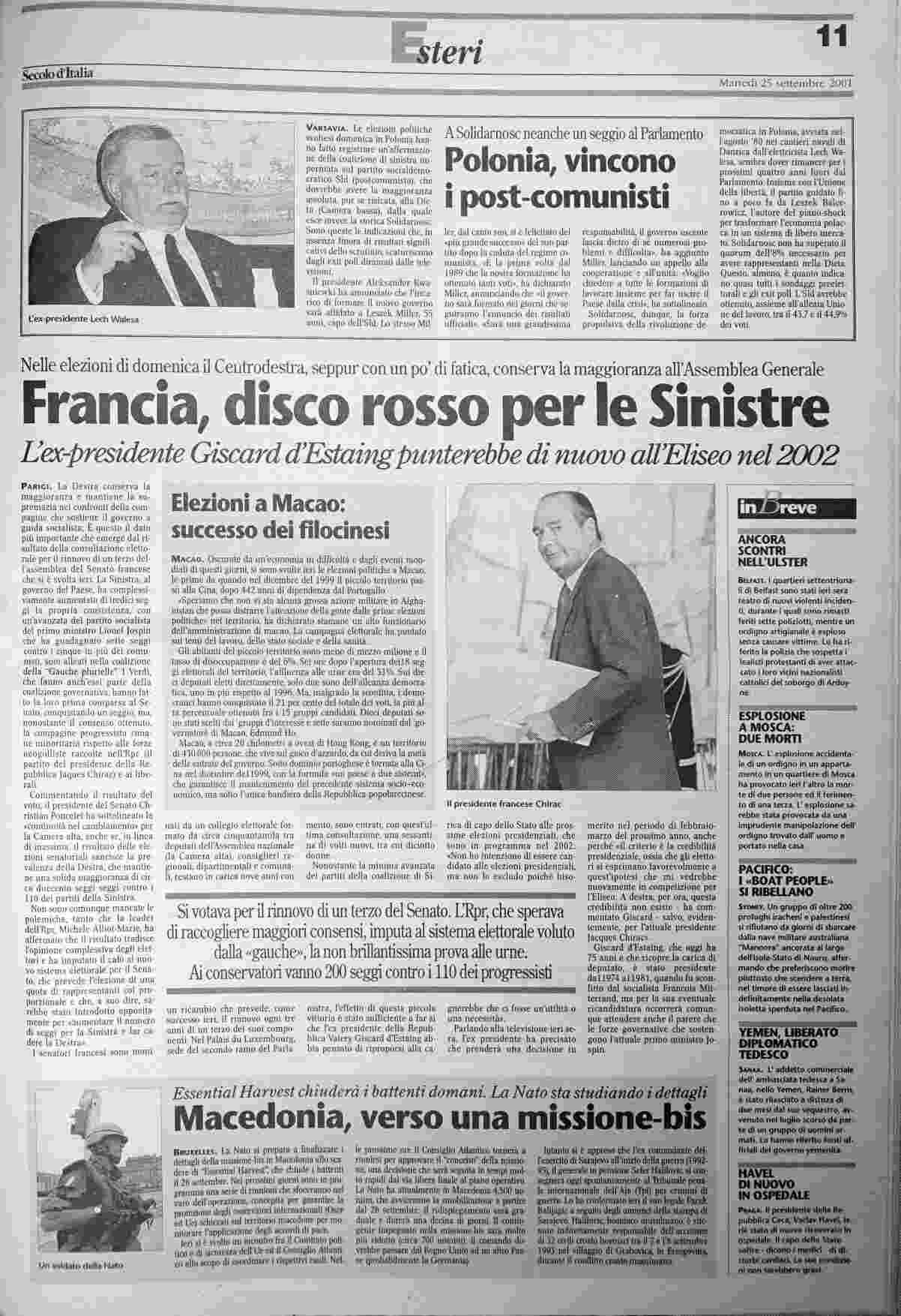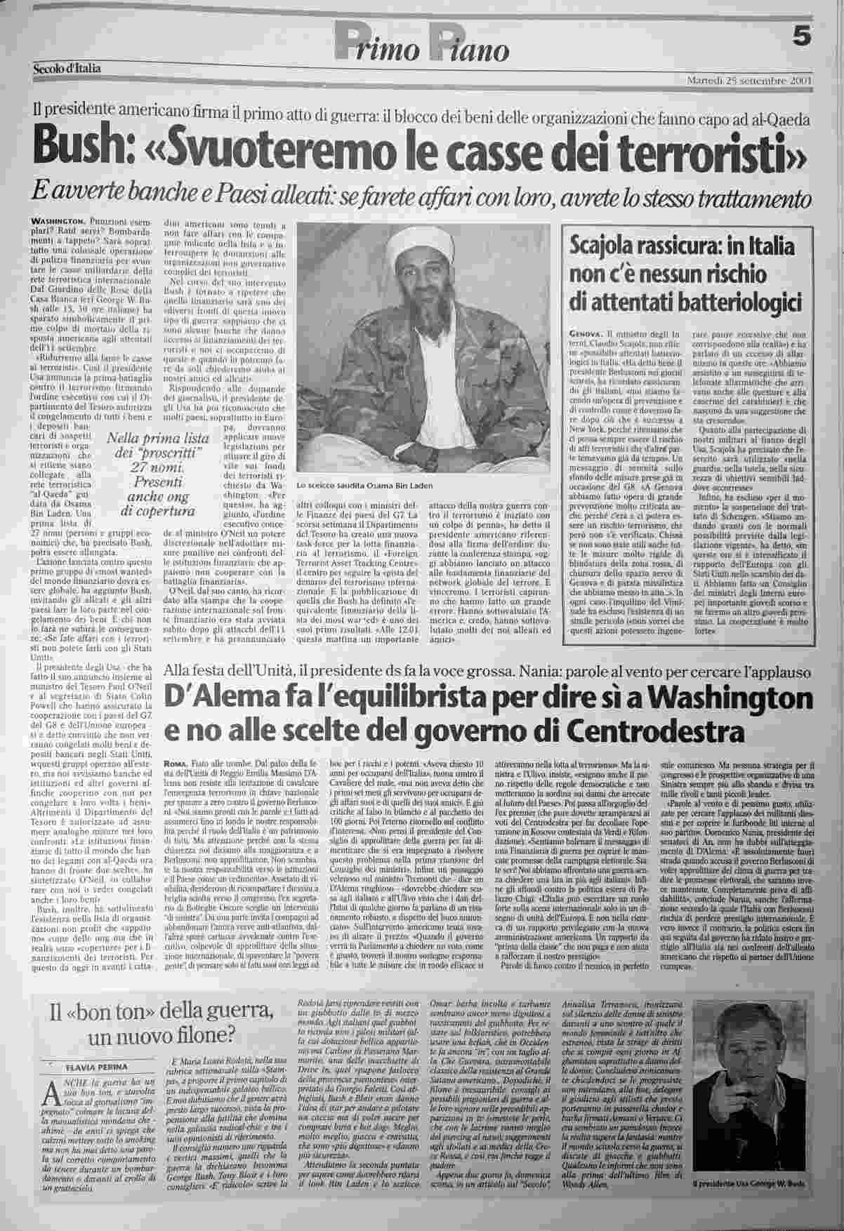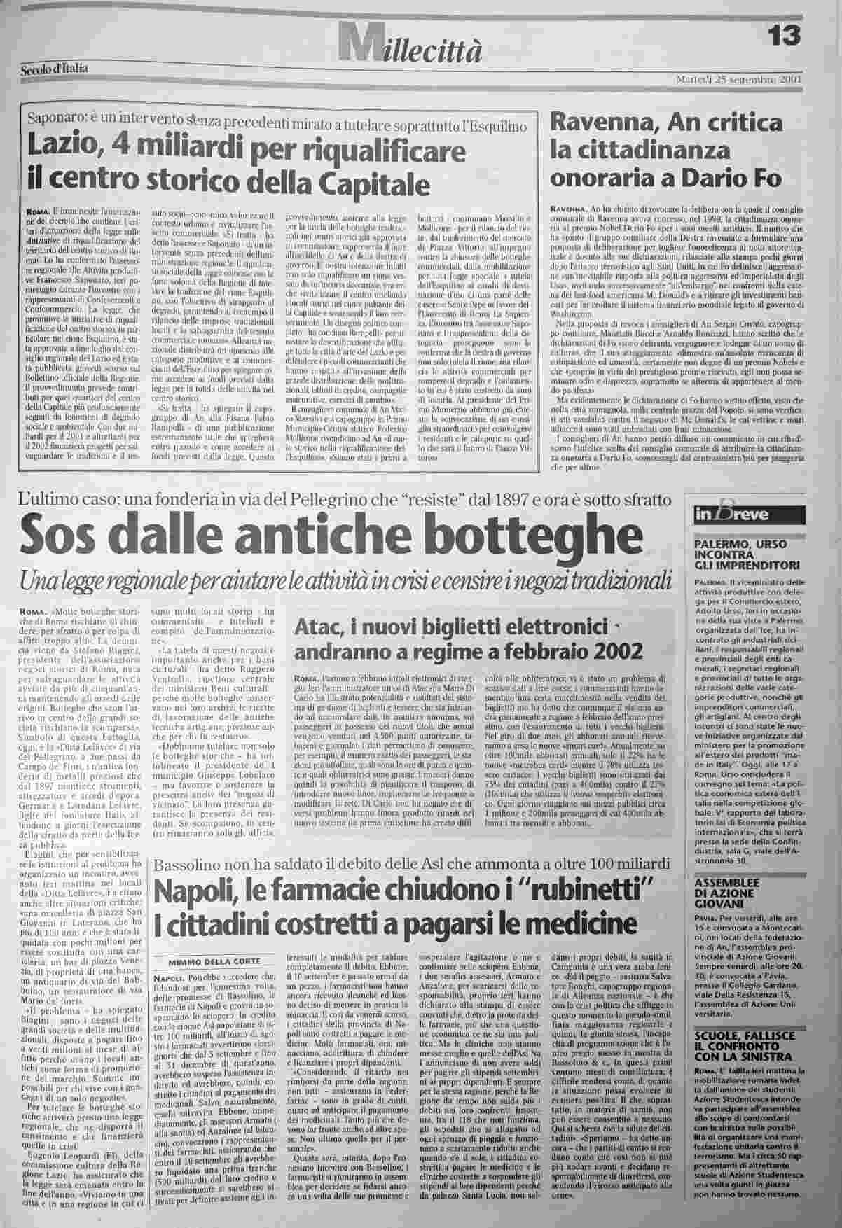 martedì 25 settembre 2001