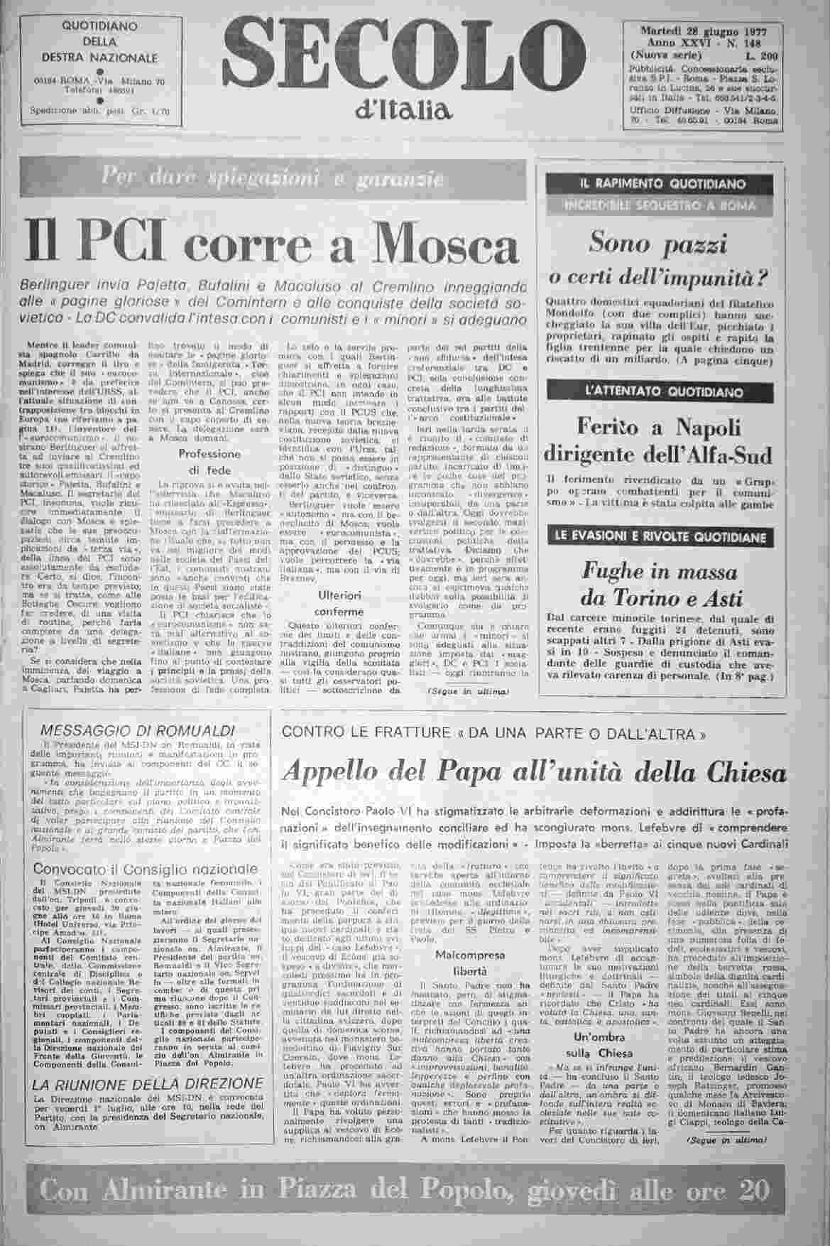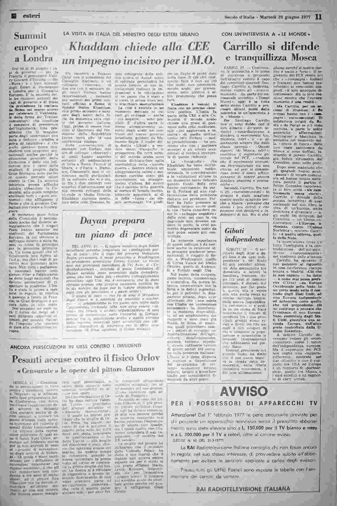 martedì 28 giugno 1977