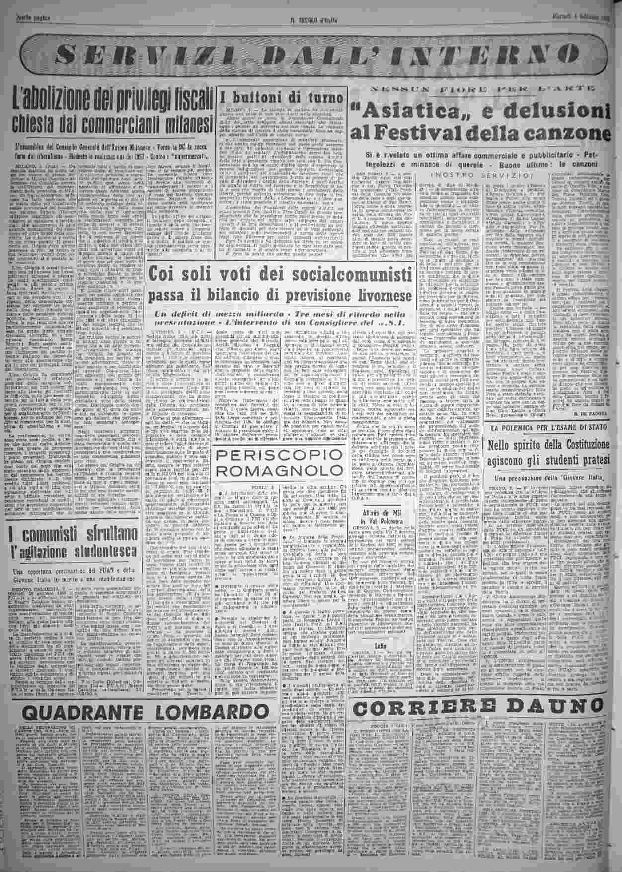 martedì 4 febbraio 1958