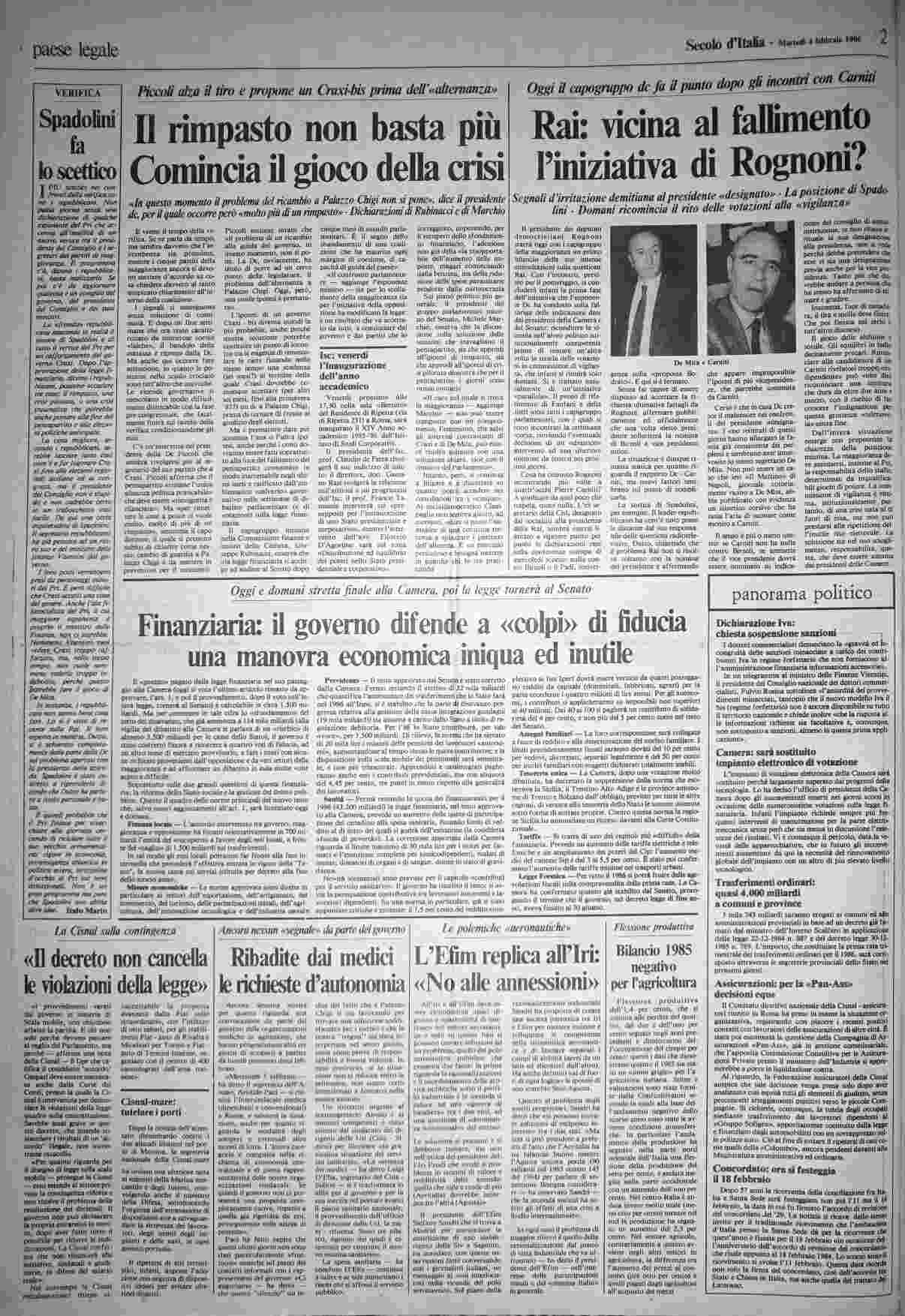 martedì 4 febbraio 1986