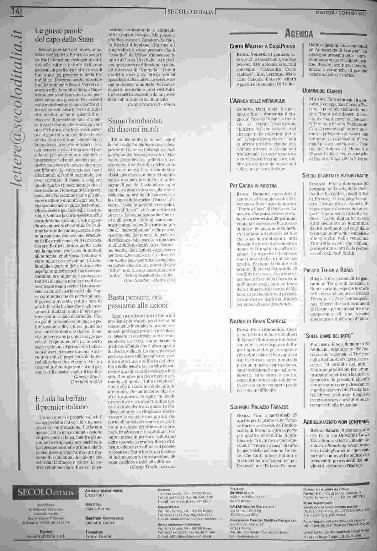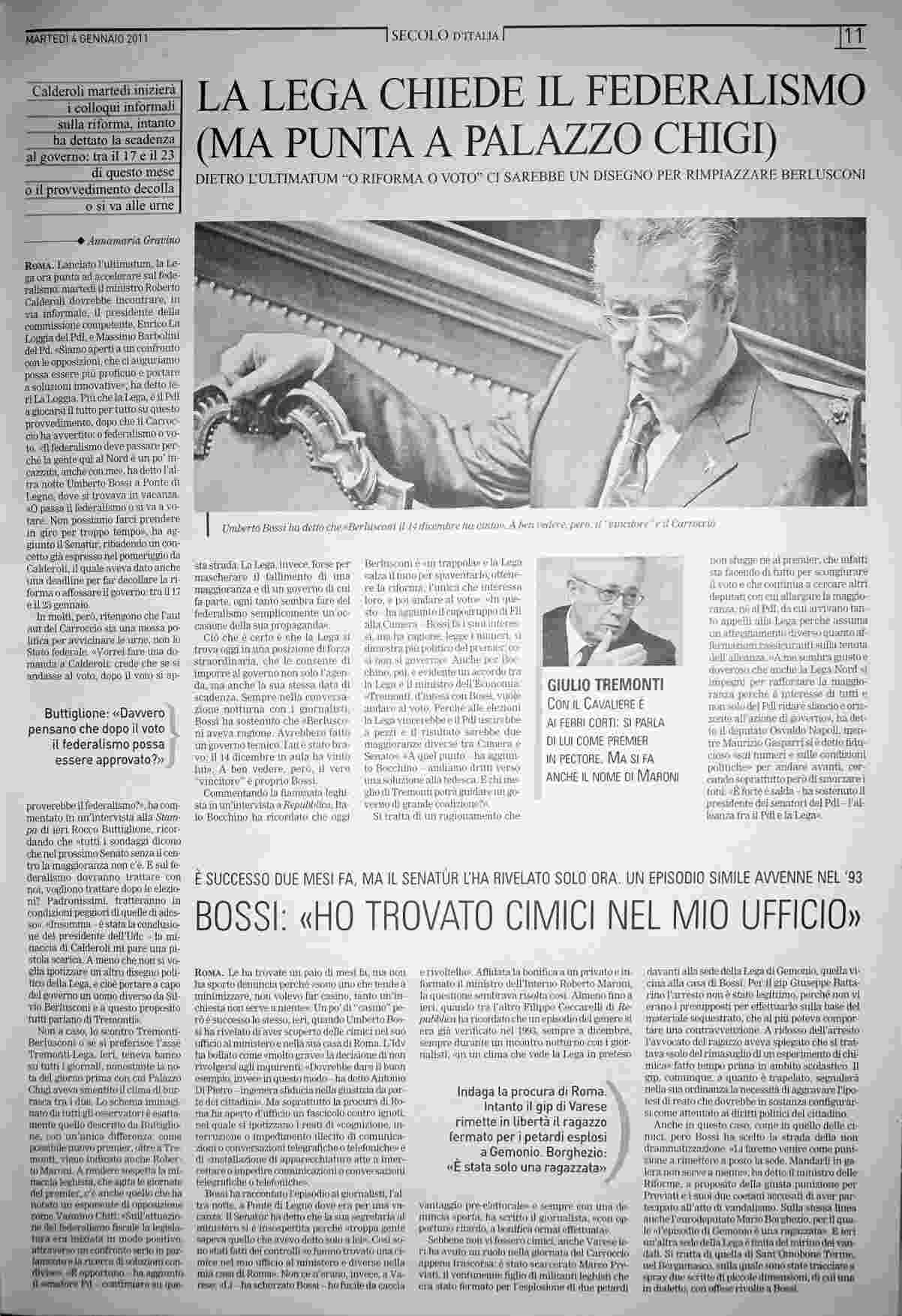 martedì 4 gennaio 2011