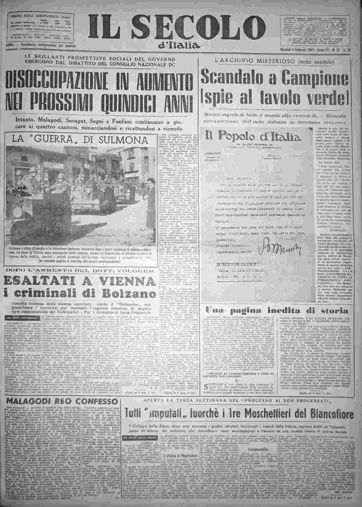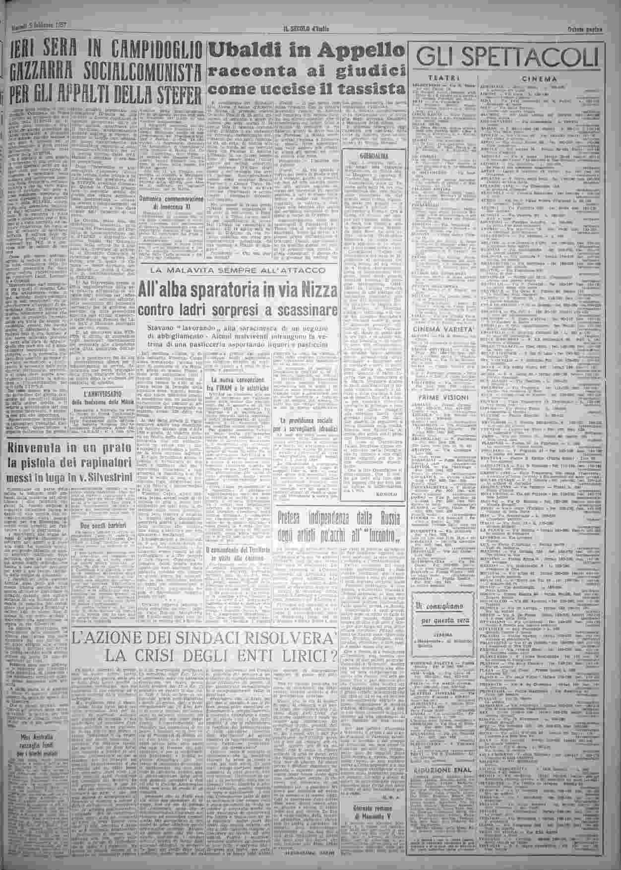 martedì 5 febbraio 1957