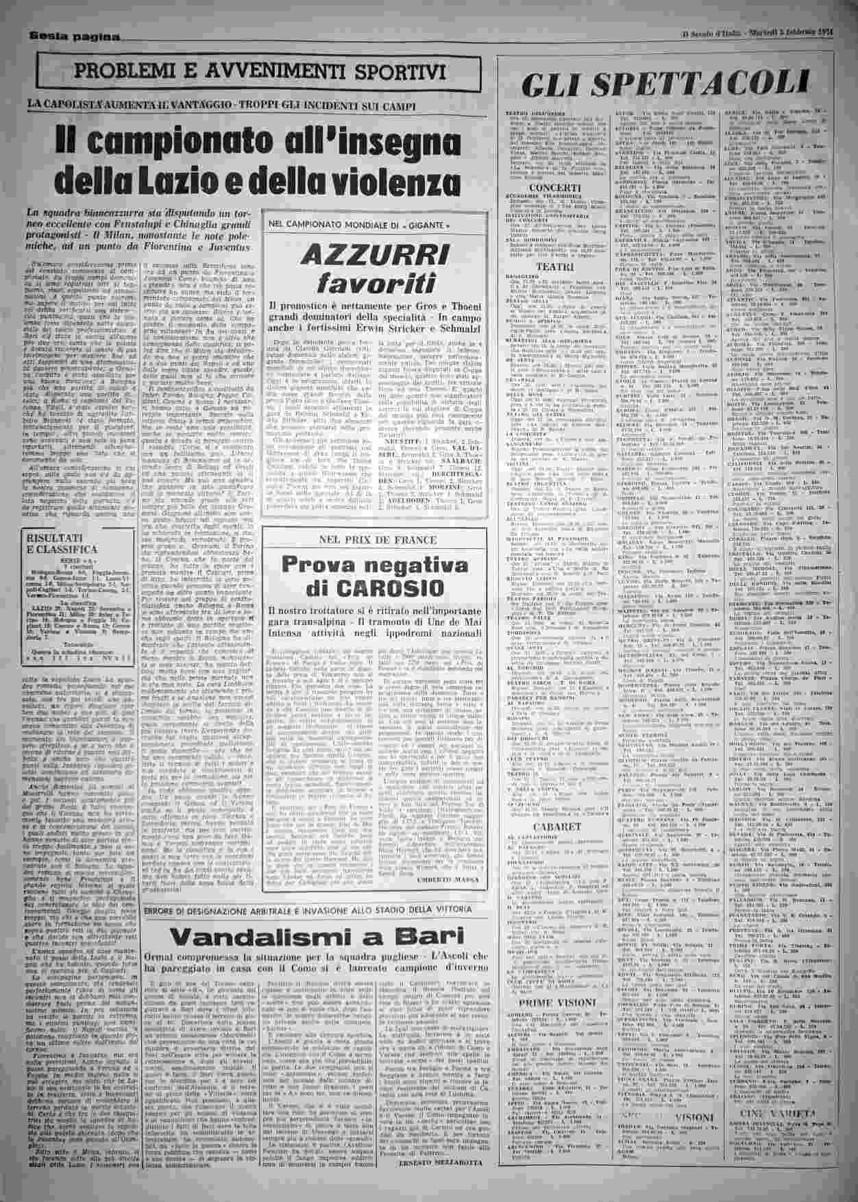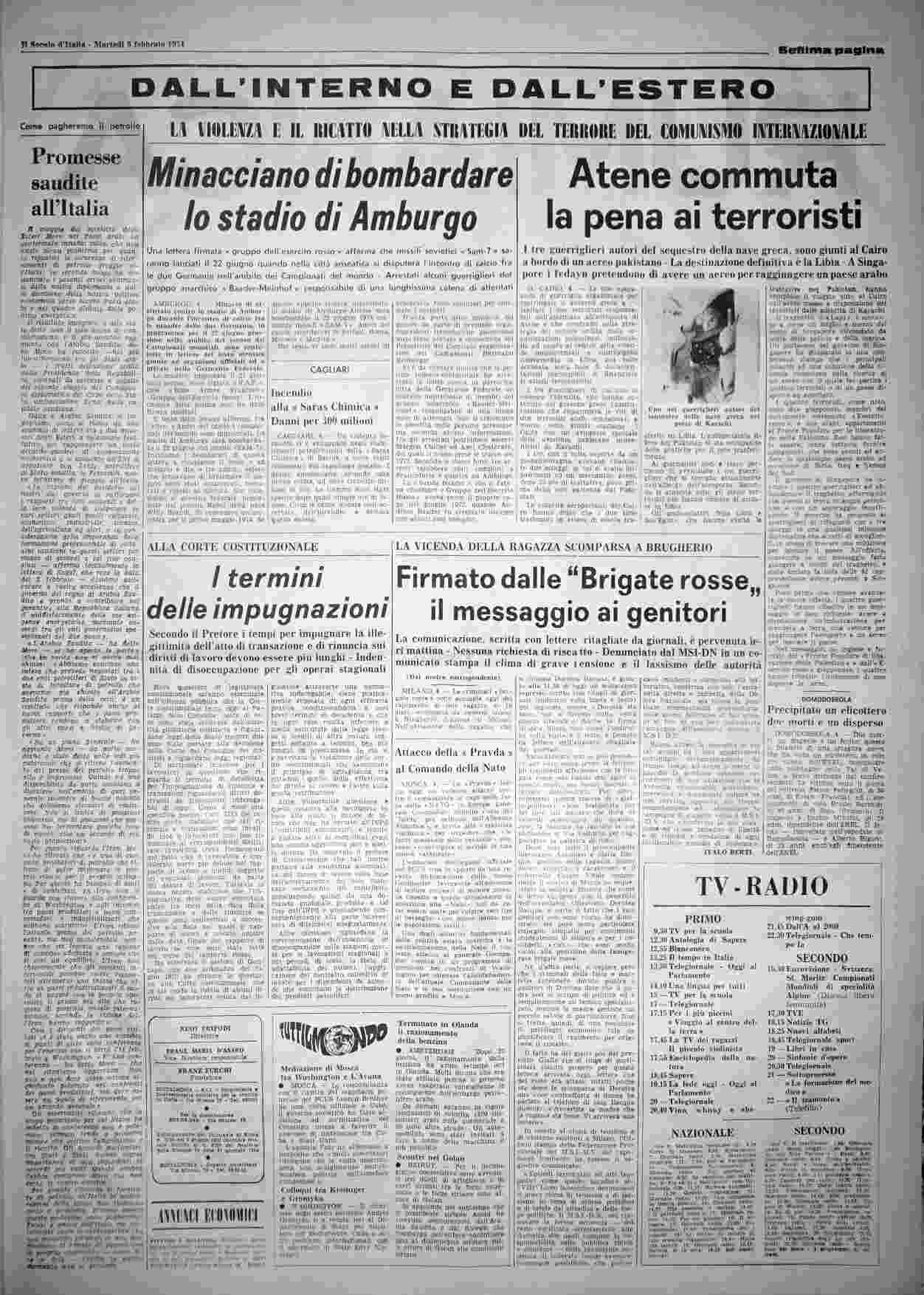 martedì 5 febbraio 1974