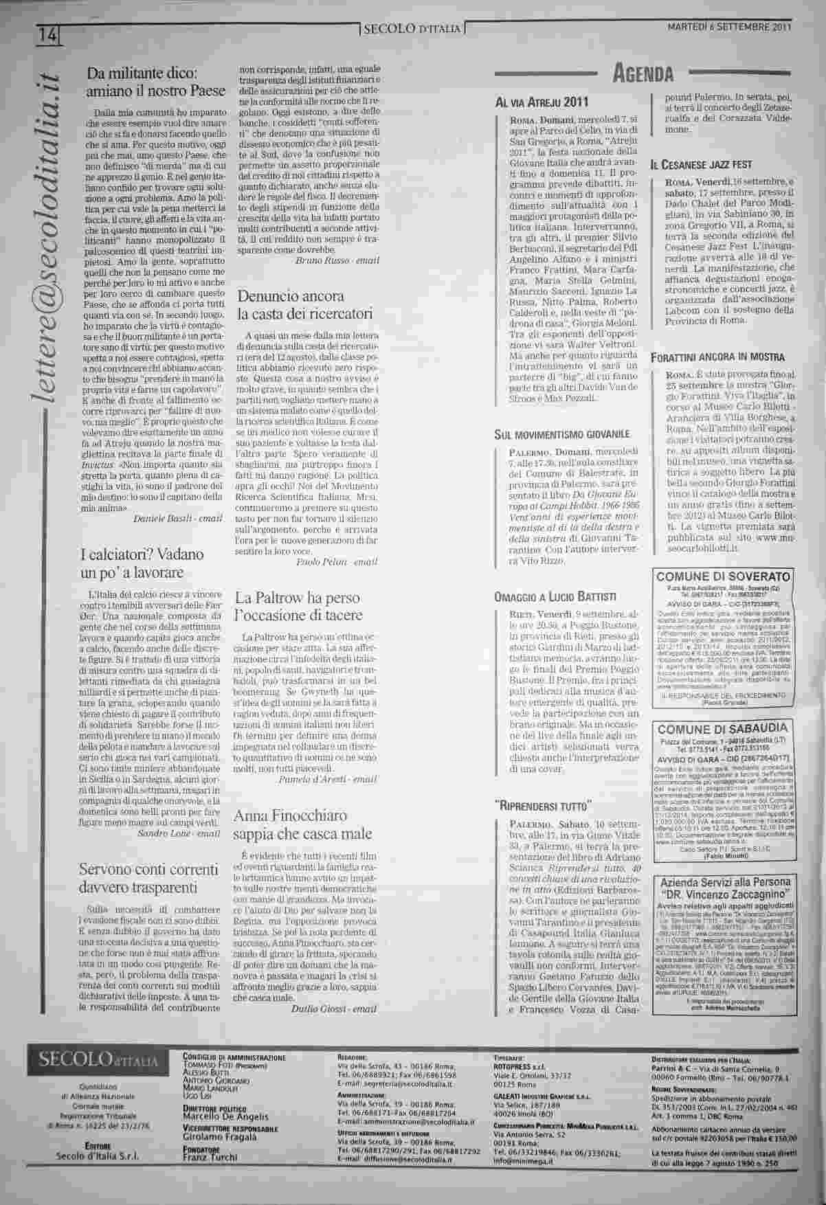 martedì 6 settembre 2011