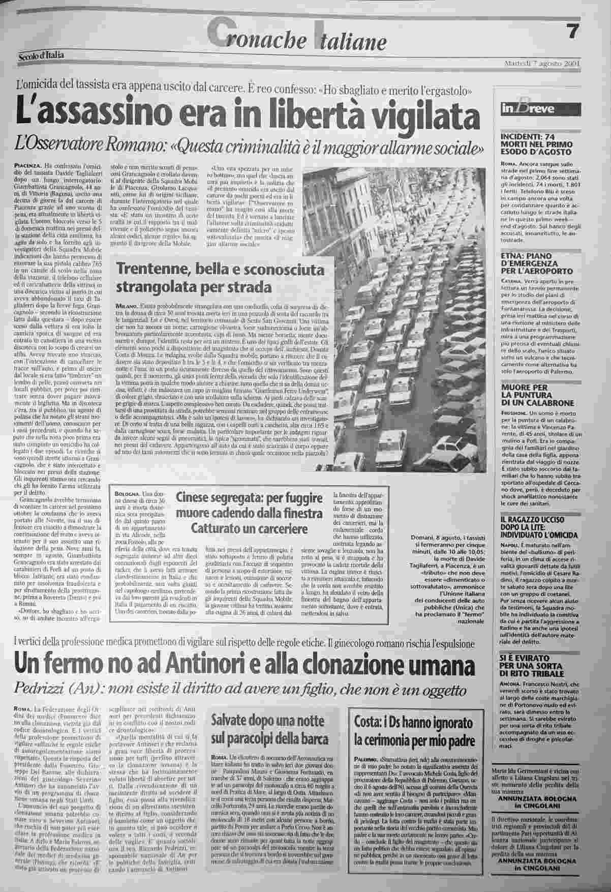 martedì 7 agosto 2001